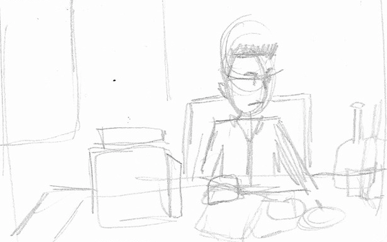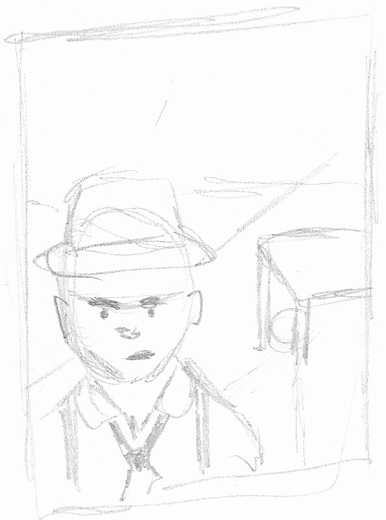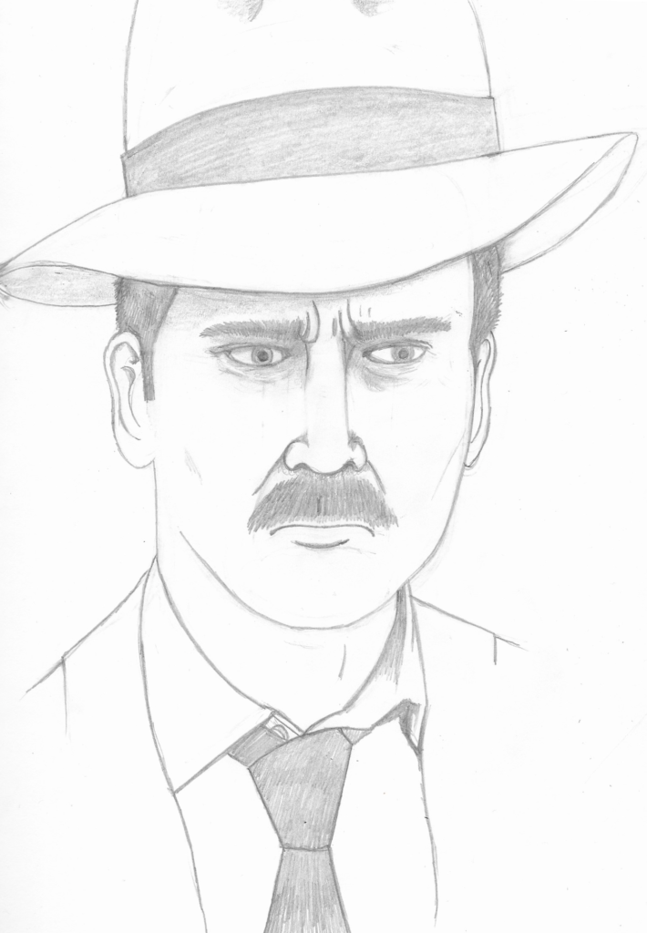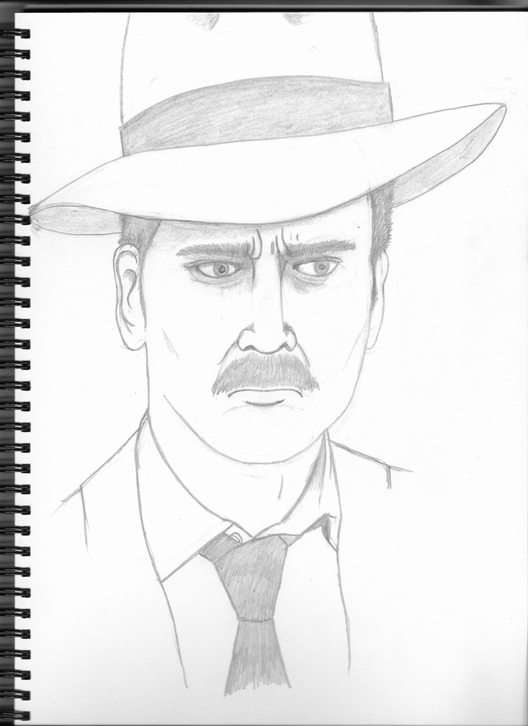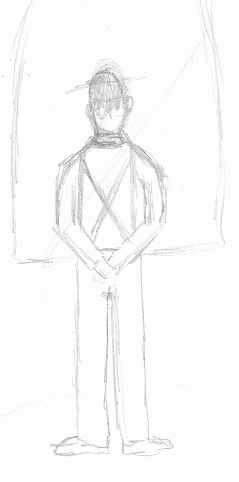 Originally I was thinking of placing the character in the room, but then decided against this for two reasons. Firstly, from my experience of the Using Reference exercise and the amount of time and frustration it took for me to get some sort of decent looking room in terms of perspective, etc, I did not think it would benefit this exercise. Secondly, I personally felt that it was the character that was the most interesting and intriguing element in the extract rather than the room/furniture apart from how this influenced my understanding of him. Therefore I decided to do a head and shoulders portrait.