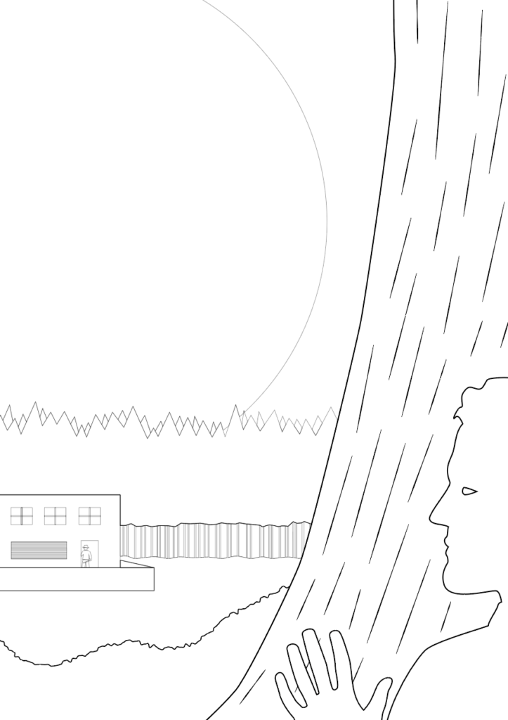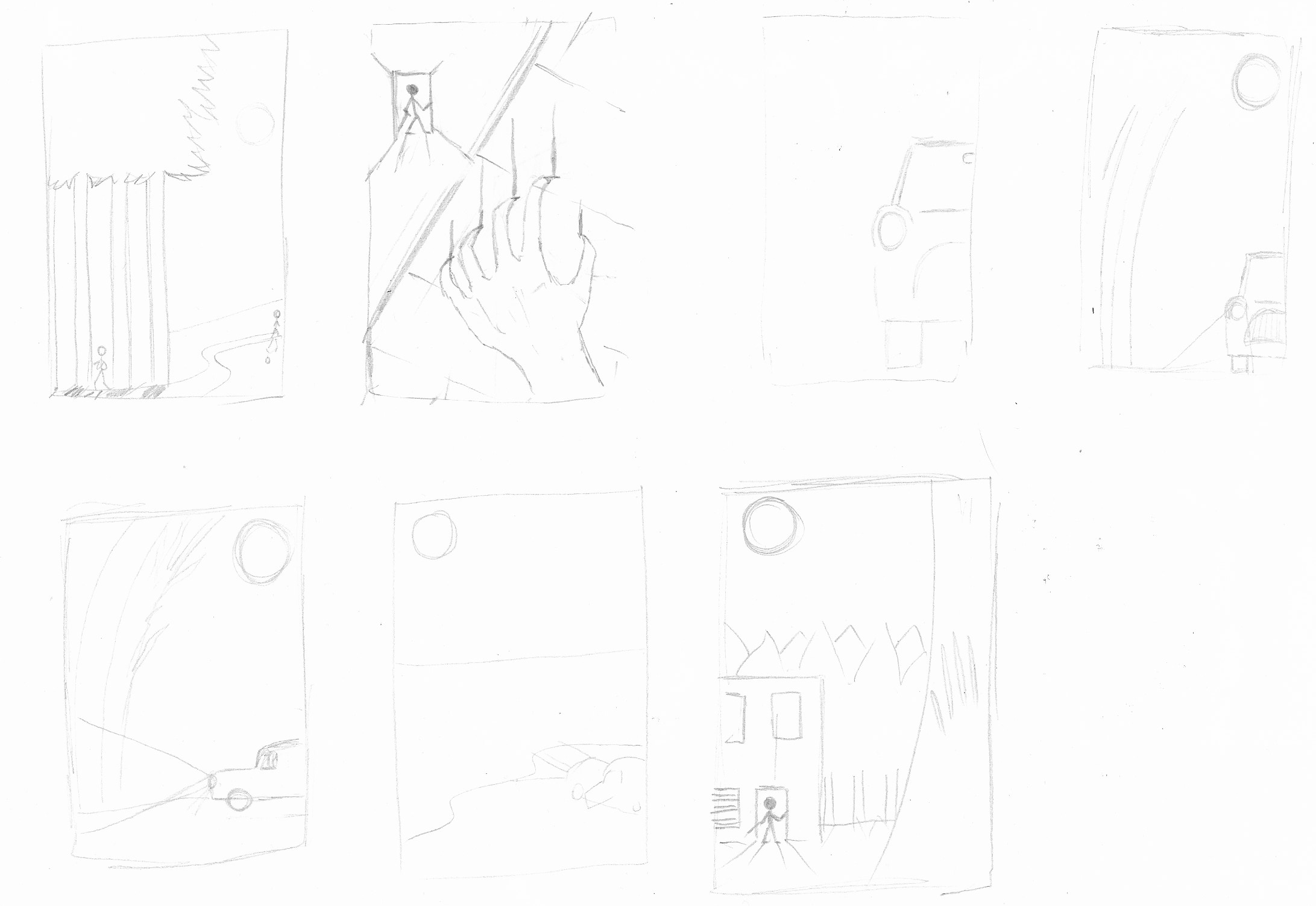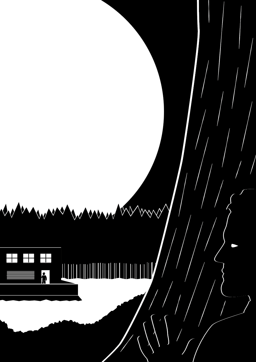 Originally I was going to have claw marks on the tree and make the person in the building look more like the ‘potential victim’, but then decided to go with the silhouette of a person hiding behind the tree which I felt adds more ambiguity and added intrigue to the illustration. It’s only when you focus in on the building that you see the person looks like he is up to no good. I tried to think about placement of the focal points in the composition and scale.