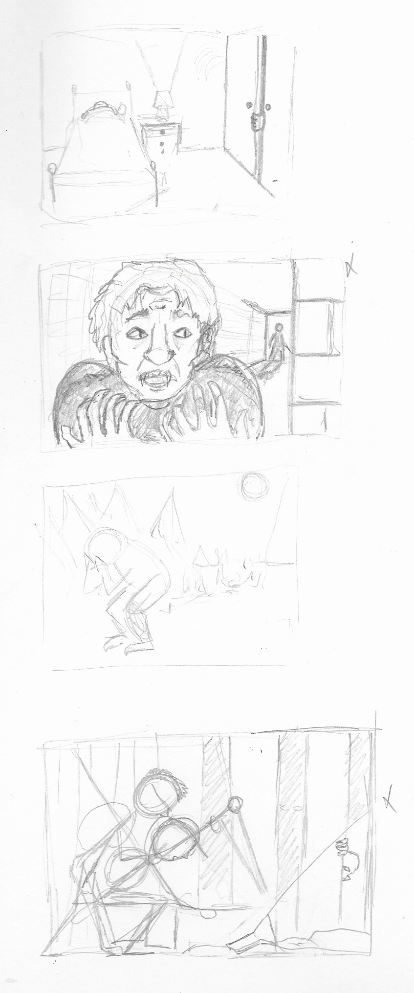 The artists that I focused on was Geoff Grandfield as I felt his narrative work most closely represented the mood and style that I wanted to try and convey in my illustration. I liked the dynamic composition of Grandfield’s work as it made me feel I was part of the story, looking in on the often dramatic action.