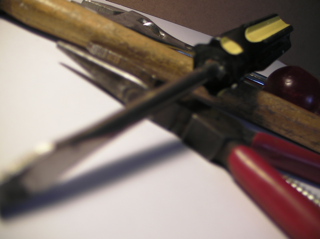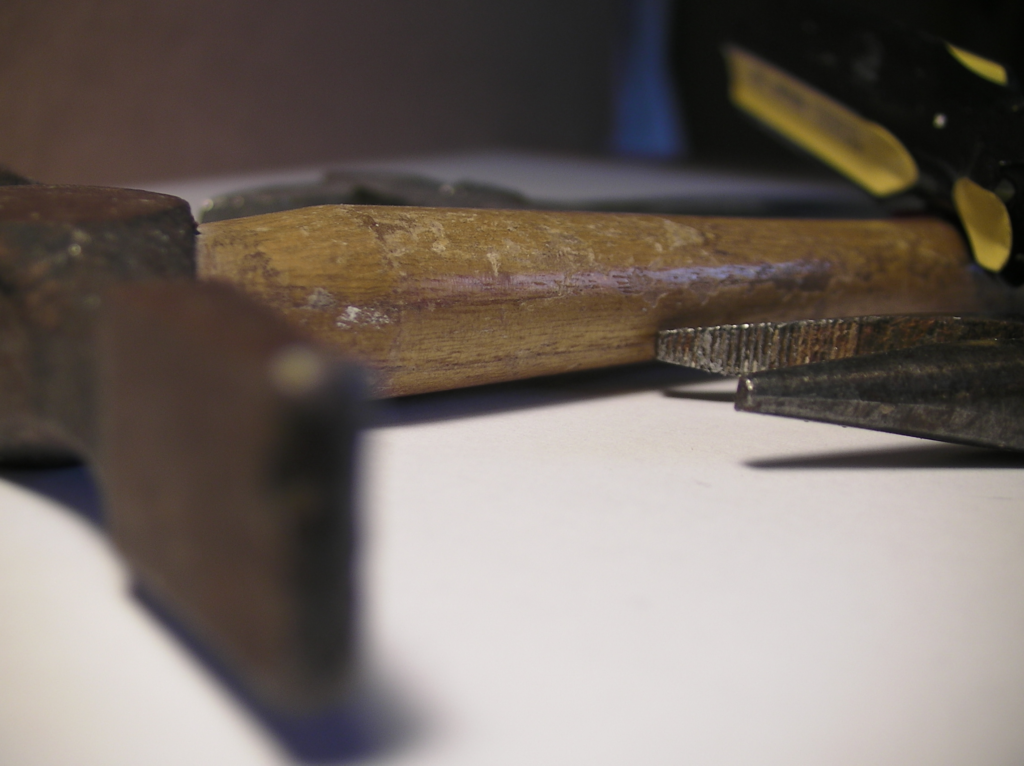 I then took a series of photos of the objects. I attempted to consider the angle of the tools within the composition, as well as the sense of the set-up being non-staged.
