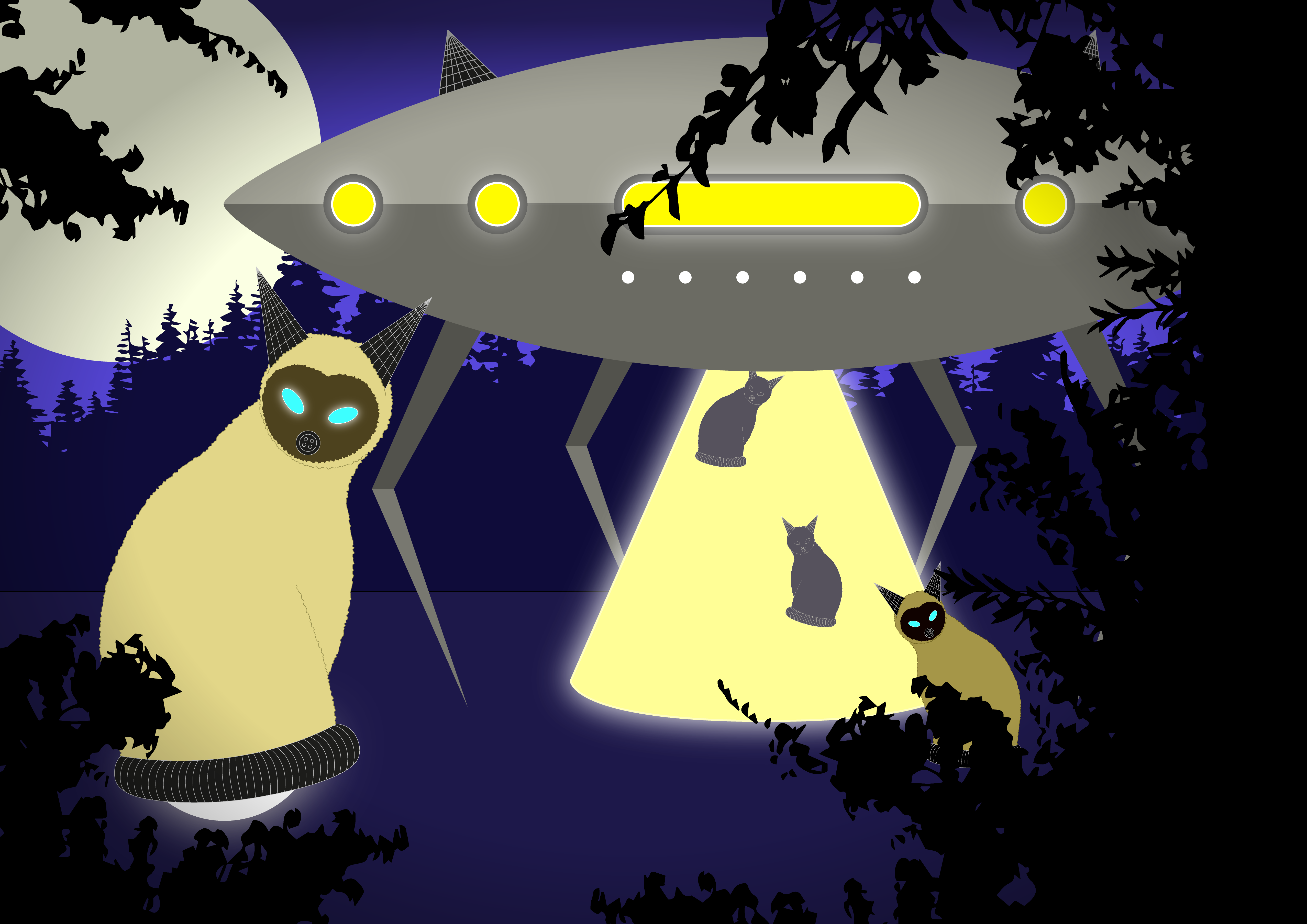 I then scanned both the cat and the UFO into Illustrator and began to build up my chosen composition.