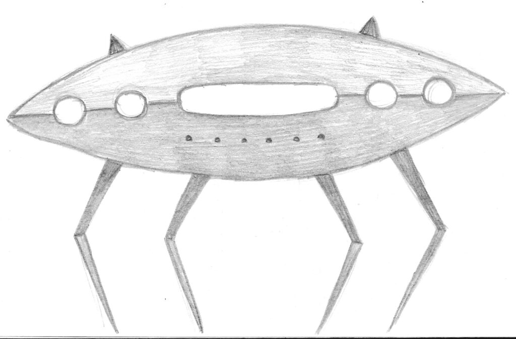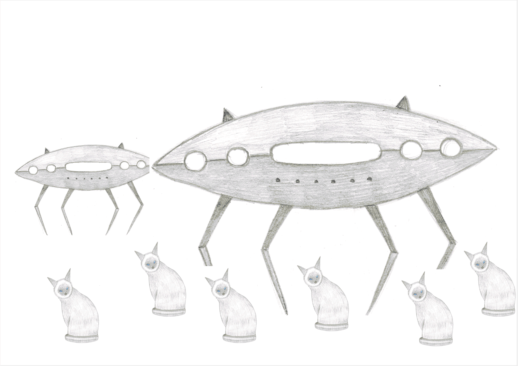 After some consideration, I decided to go with my impression of the cat now resembling an alien. I began to have a vague idea of the direction I was going to take. I sketched out a rough UFO.