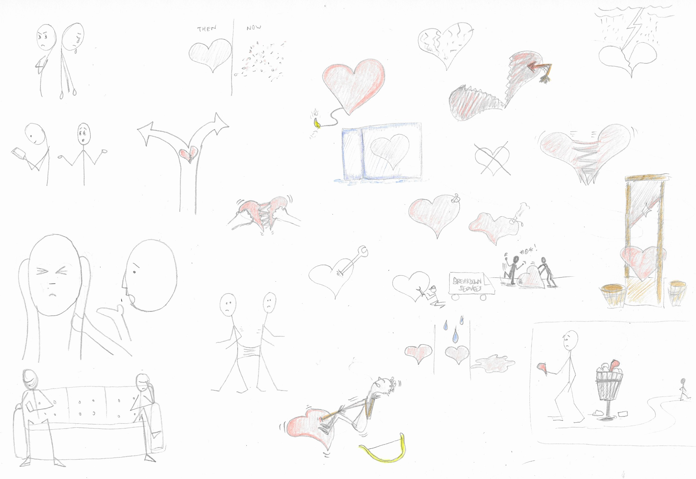 I think some of my attempts were more successful than others. I’m not sure if they had to specifically convey the phrase ‘broken relationship’ so that someone would think of those two words exactly or if it rather it could be connotations of the phrase. If it is the latter, then a few of the drawings achieved this.