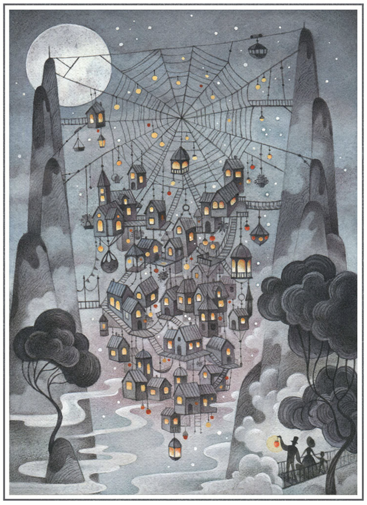 Gaia Bordicchia – who has created a fantastical representation of the city that is the subject of this assignment. The style is reminiscent of a children’s book illustration. I considered the composition to be well-balanced and I liked the inclusion of the spiderweb. The only aspect that I felt did not represent the text was that the houses are solid forms whereas Calvino describes them as ‘like sacks’, but this is an example of artistic licence.