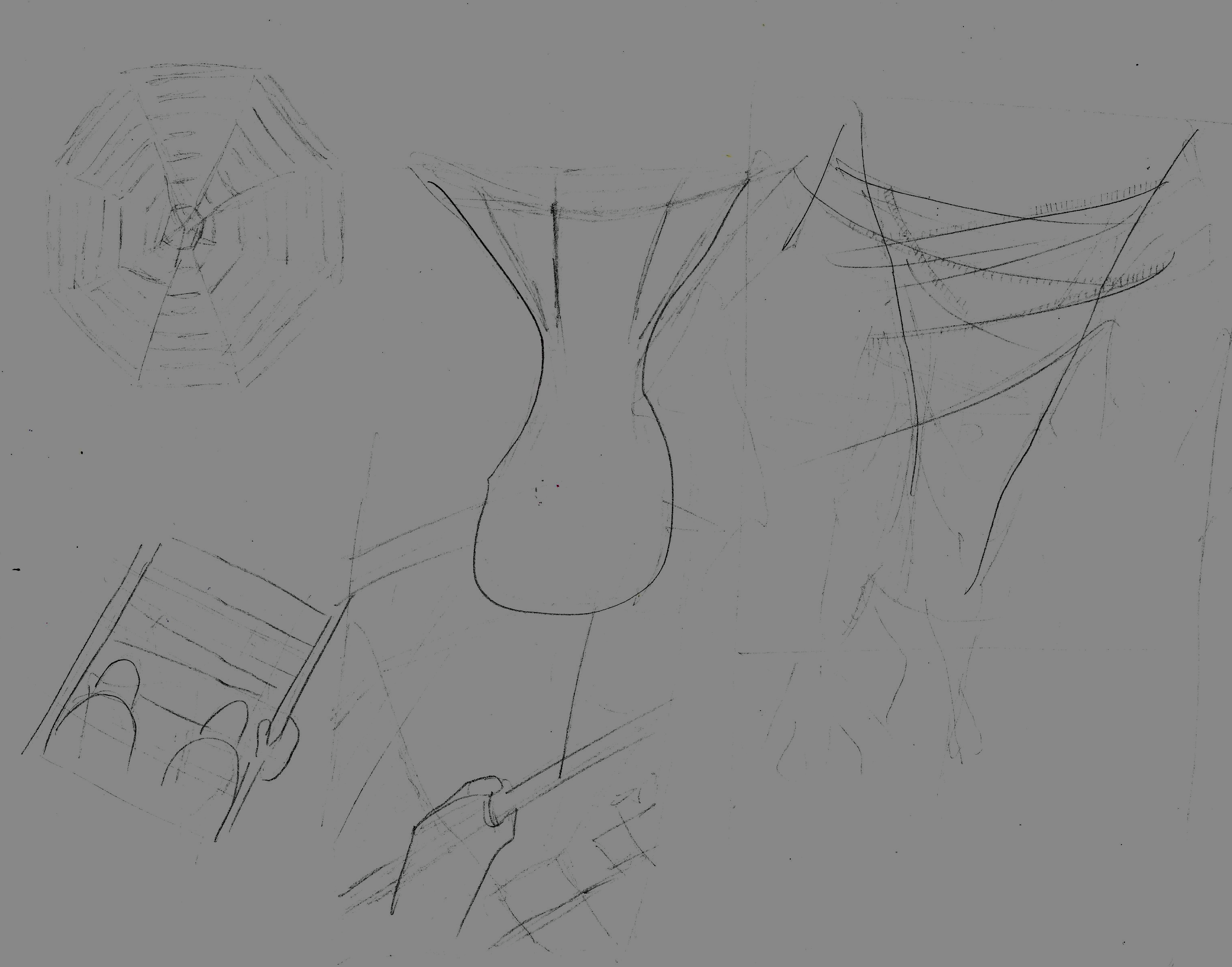 I chose to pursue this idea and see what happened. I made further sketches, each one expanding on the detail.