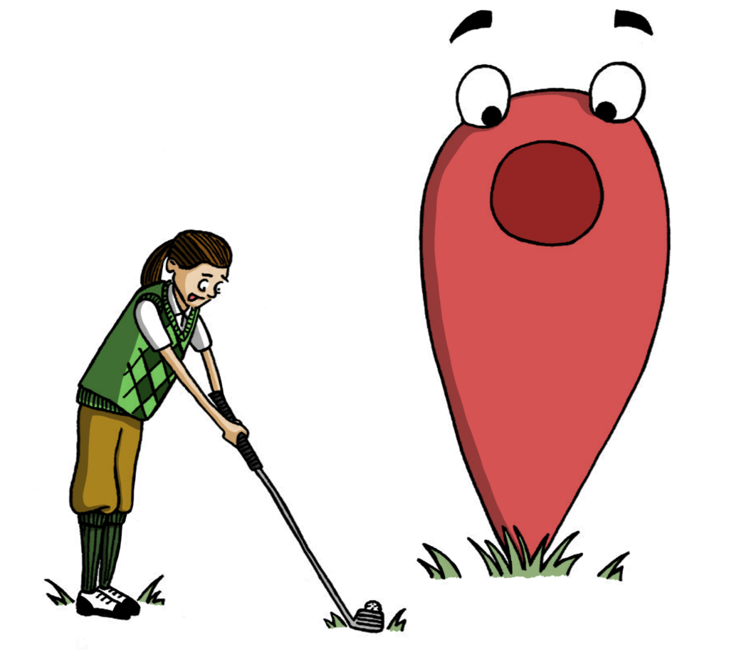 I thought that the illustration below was quite an inspired design, as I have no particular interest in golf. I am not sure how clear it is that the tongue on the character is meant to be poking out in concentration rather than her mouth being open.