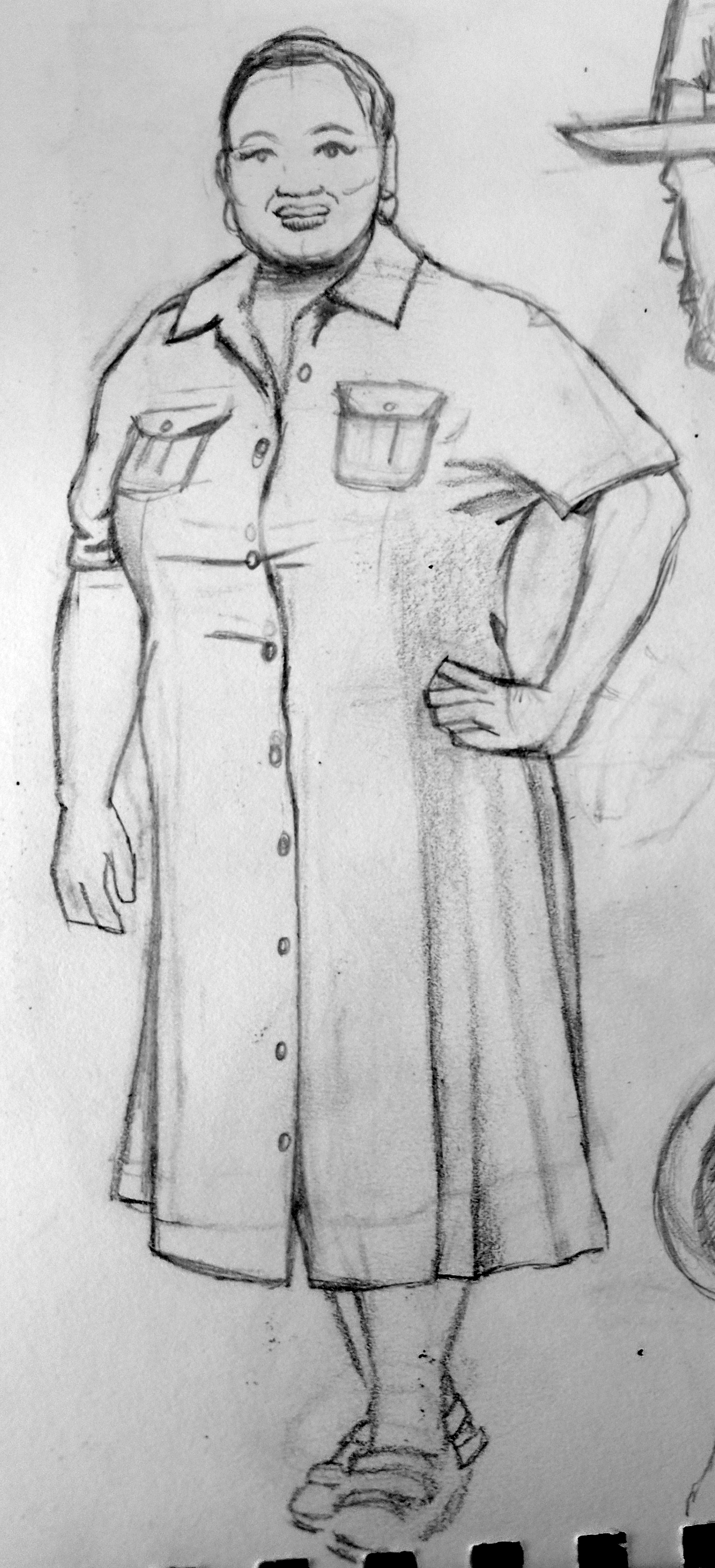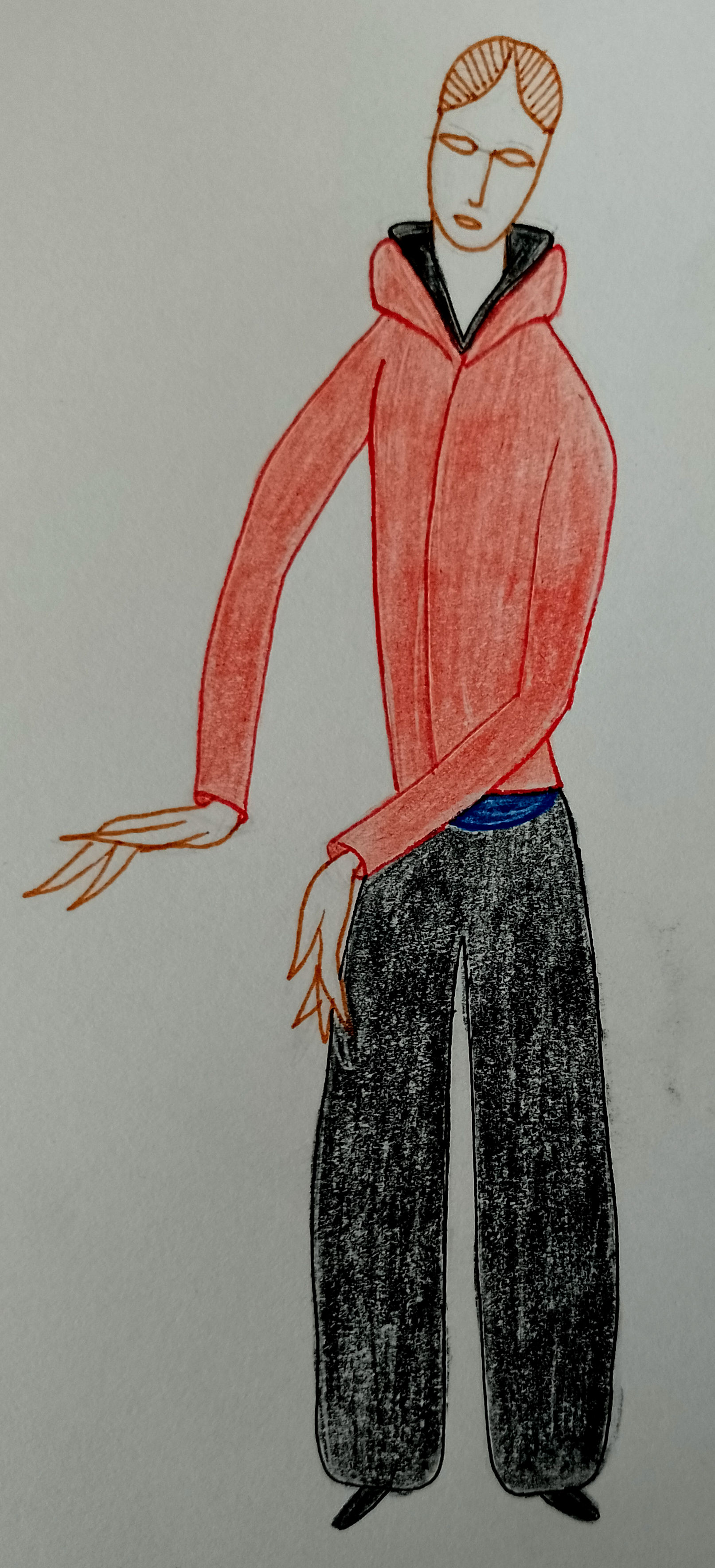 I began to feel more confident and moved onto another drawing. I had noted that the brief asked for the illustrations to capture something of the wearer’s body shape, posture and character, which I tried to keep in mind as a I progressed.