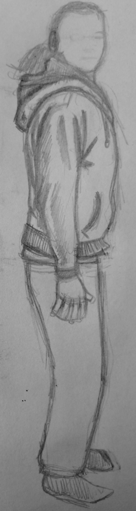 For my initial drawings I used reference photos from the internet as I found the thought of drawing people out on the street too daunting.