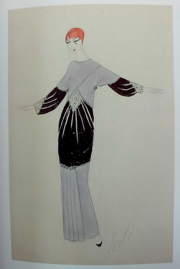 For the first illustration I chose a design by Erté, which was created using ink and watercolour. The model’s body has been elongated and the facial features simplified. One of aspects of fashion illustrations that appeals to me is that they are not necessary ‘perfect’ in so far as the edges are not always neatly finished, for example, as can be seen in here.
