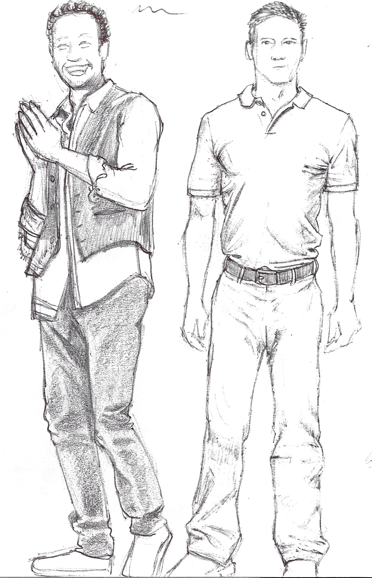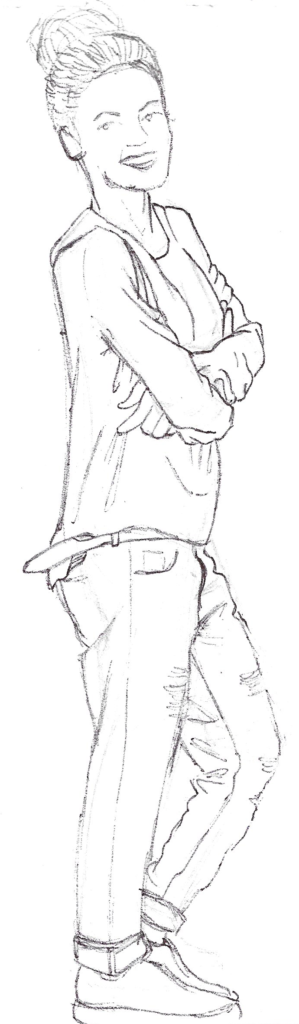 Although I used photos as reference material, I imposed time restrictions for some of my sketches to try and replicate the scenario of drawing someone from life who is not specifically posing for me. This forced me to work quickly and capture the essence of the stance and body language. I could then go back to the drawing and work on the folds/creases of the clothing.