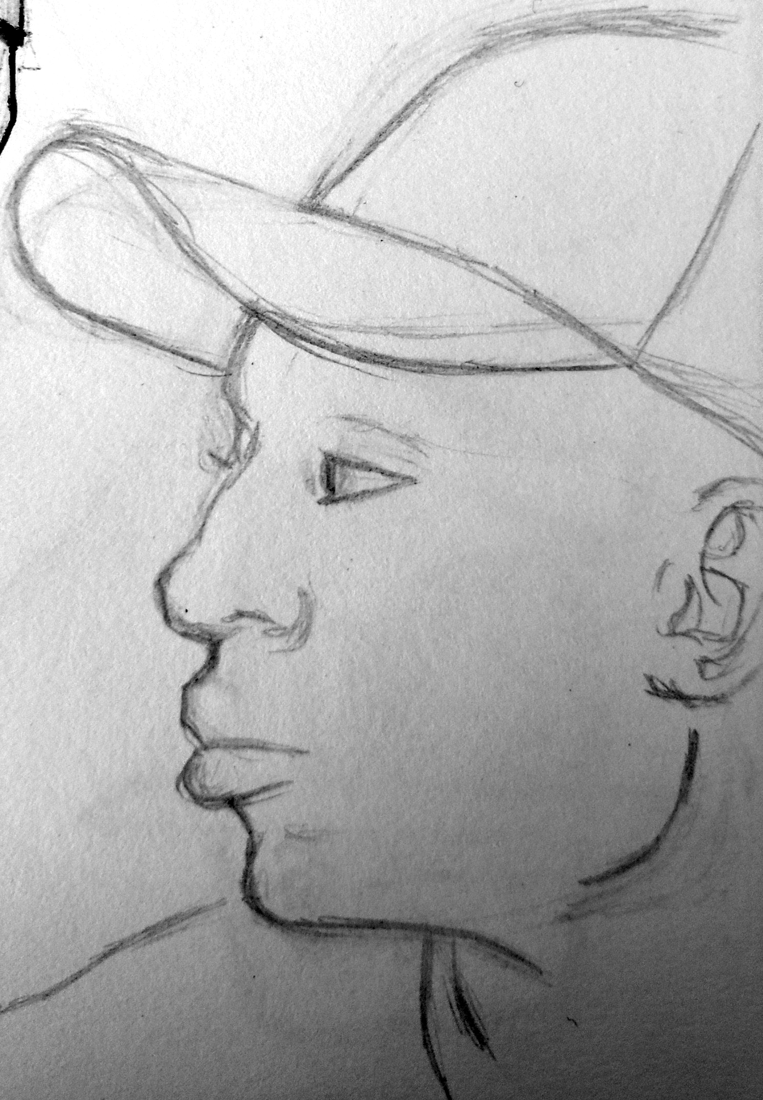 To finish with this part of the exercise, I decided to focus on the heads of people wearing hats. I have always found drawing believable hats challenging, so this forced me to really look at the source material. I sketched a few different angles of the head. I was quite pleased with these and it made me feel more confident in my ability for when I want to include hats in future drawings.