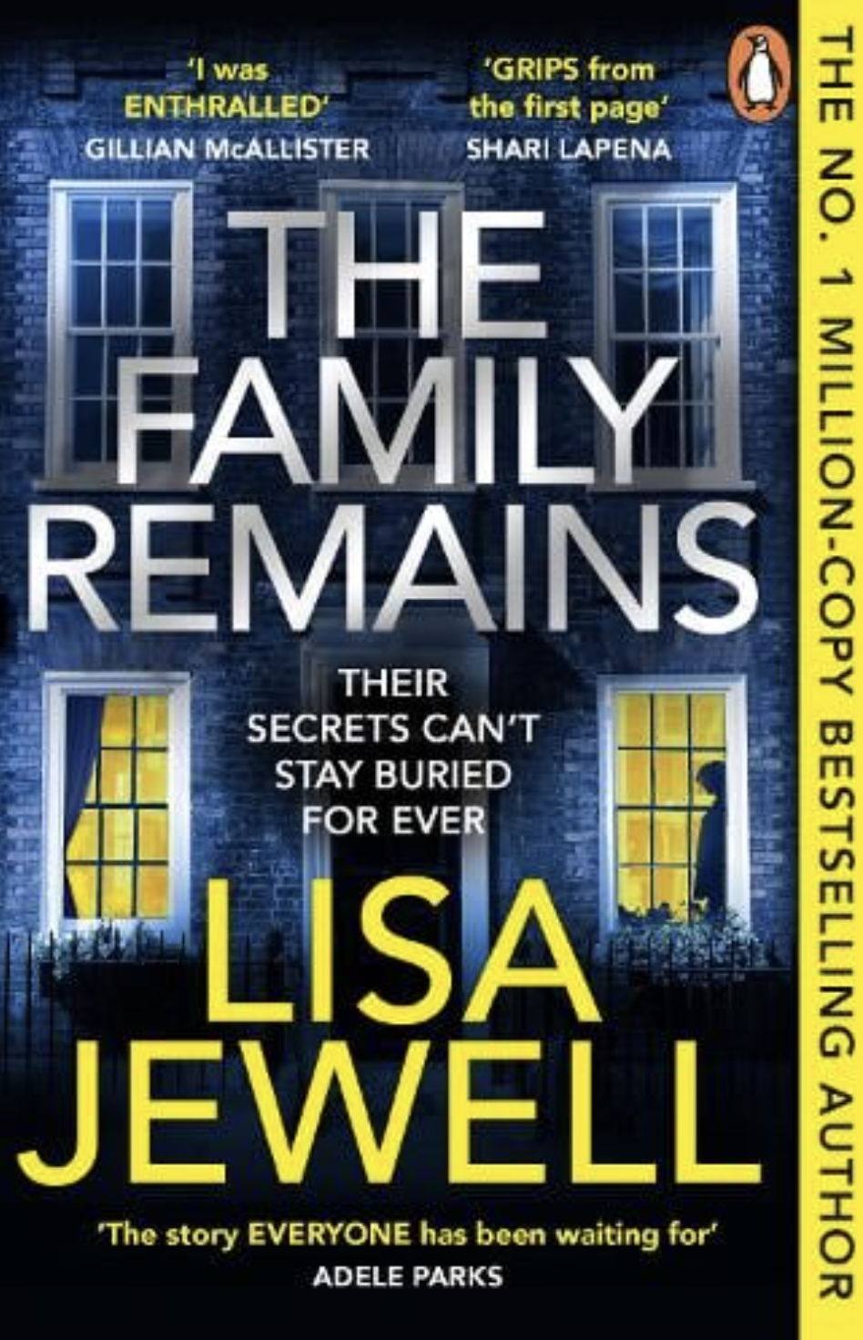 In contrast to the previous example, I considered the relationship between the type and illustration on cover for The Family Remains by Lisa Jewel, below, to be notably more successful. This cover feels balanced, both in terms of the placement of the different elements and the distribution of colour via the yellow text against the blue background. All of the text is readable and the use of a large, bold, sans serif font for the title and author’s name enhances this. The focal point within the illustration is the two lit windows, particularly the right one with the silhouette looking out at the viewer, neither of which is obstructed by the type.