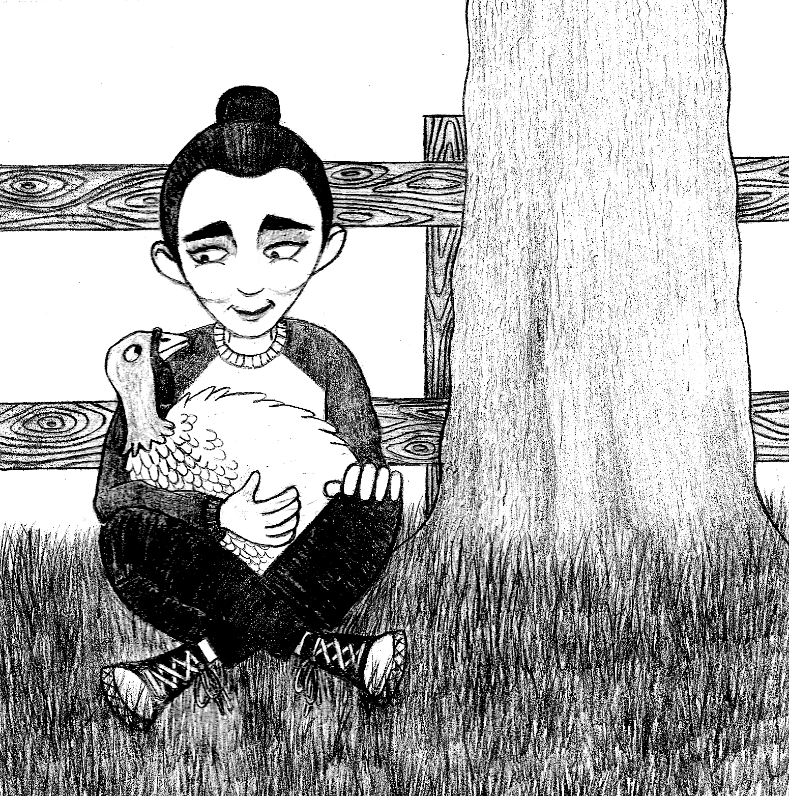 - As I worked with pencil in the second drawing, I tried to think about how I could differentiate the shading of the different sections of the drawing so that it did not just end up as one shade of grey – this was not easy to do and I do not feel I was overly successful at this. However, I was very pleased with the wooden texture I drew on the fence.