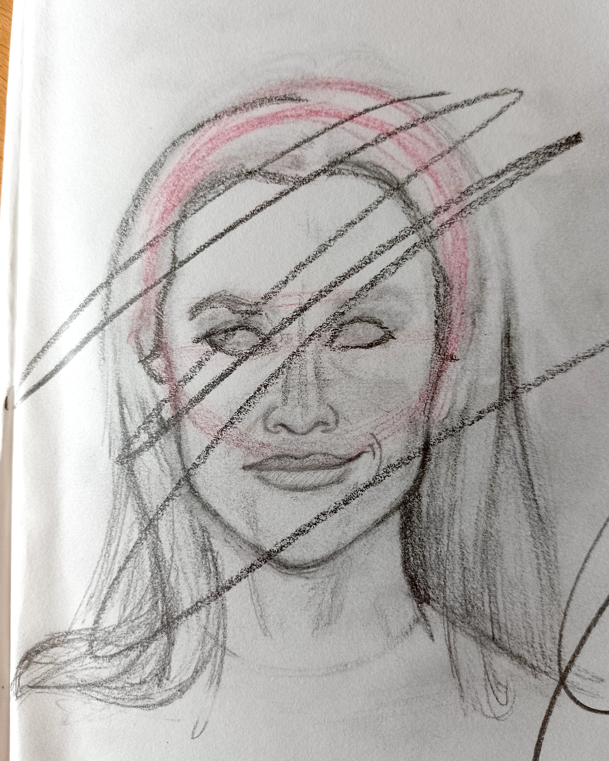 Having to contend with this issue alongside attempting to recreate likeness in my drawing resulted in frustration and eventually giving up with this first attempt.