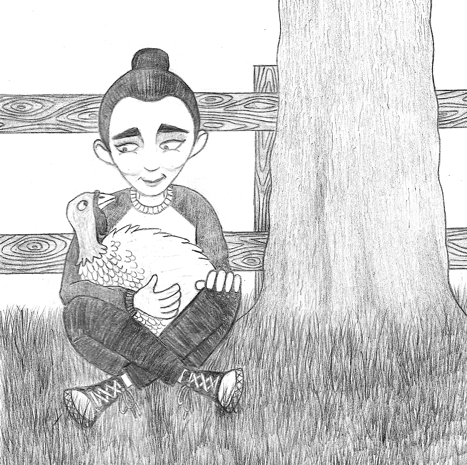 - As I worked with pencil in the second drawing, I tried to think about how I could differentiate the shading of the different sections of the drawing so that it did not just end up as one shade of grey – this was not easy to do and I do not feel I was overly successful at this. However, I was very pleased with the wooden texture I drew on the fence.