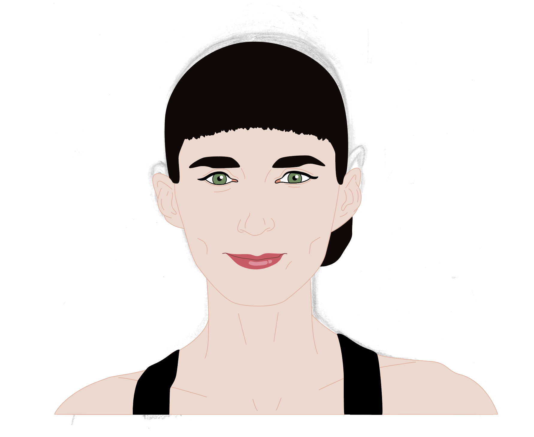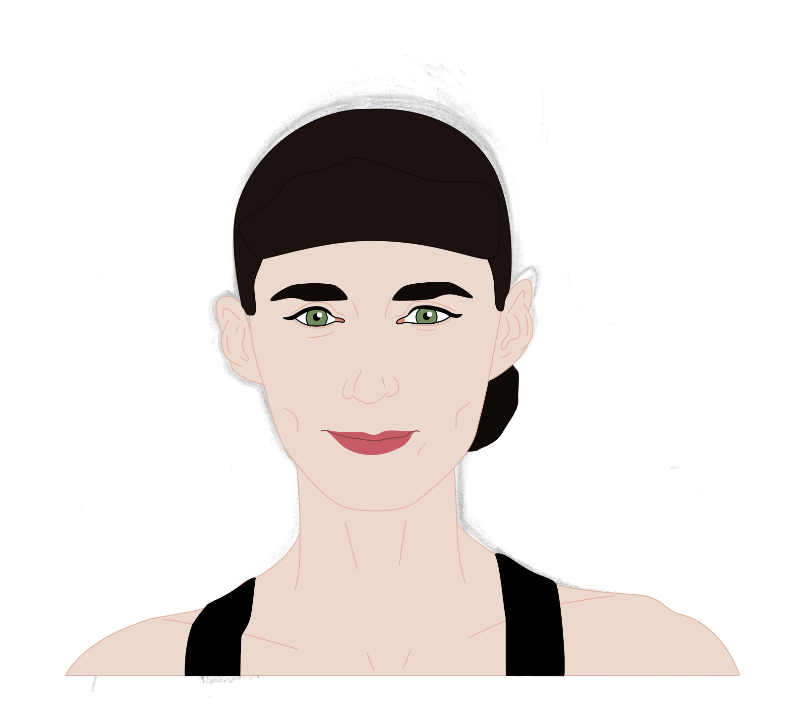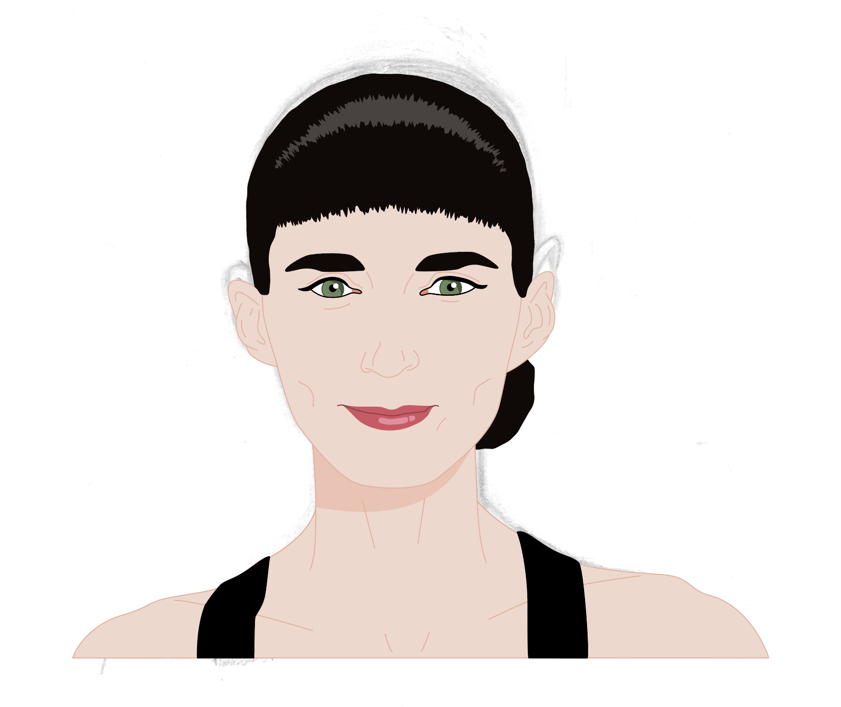 As I was not happy with the drawing in terms of being a character portrait of Rooney Mara, I decided to prolong the pain of this section of the exercise and scan the drawing into Illustrator. I spent an unspeakable amount of time fiddling around trying to get the image to resemble Mara.