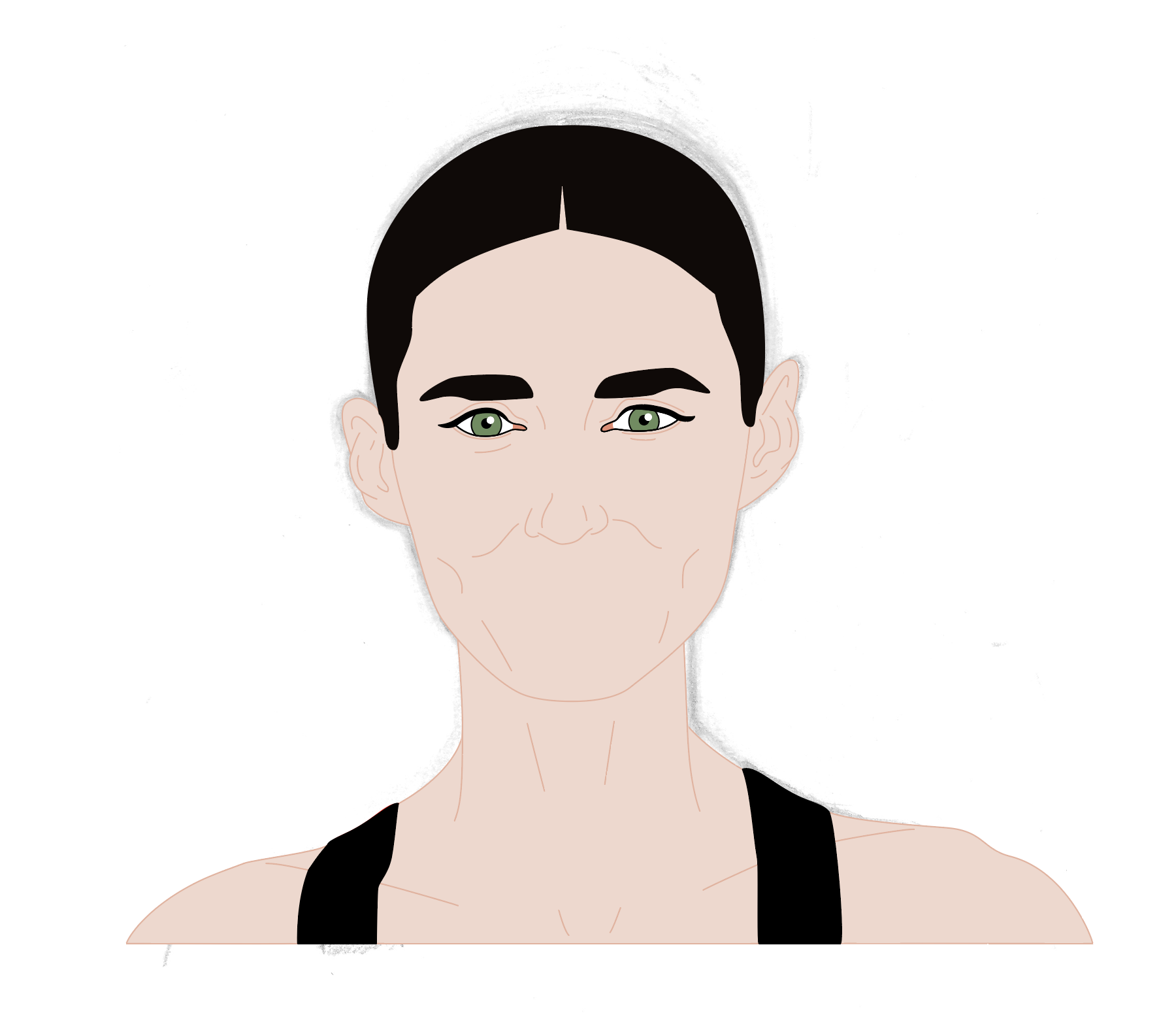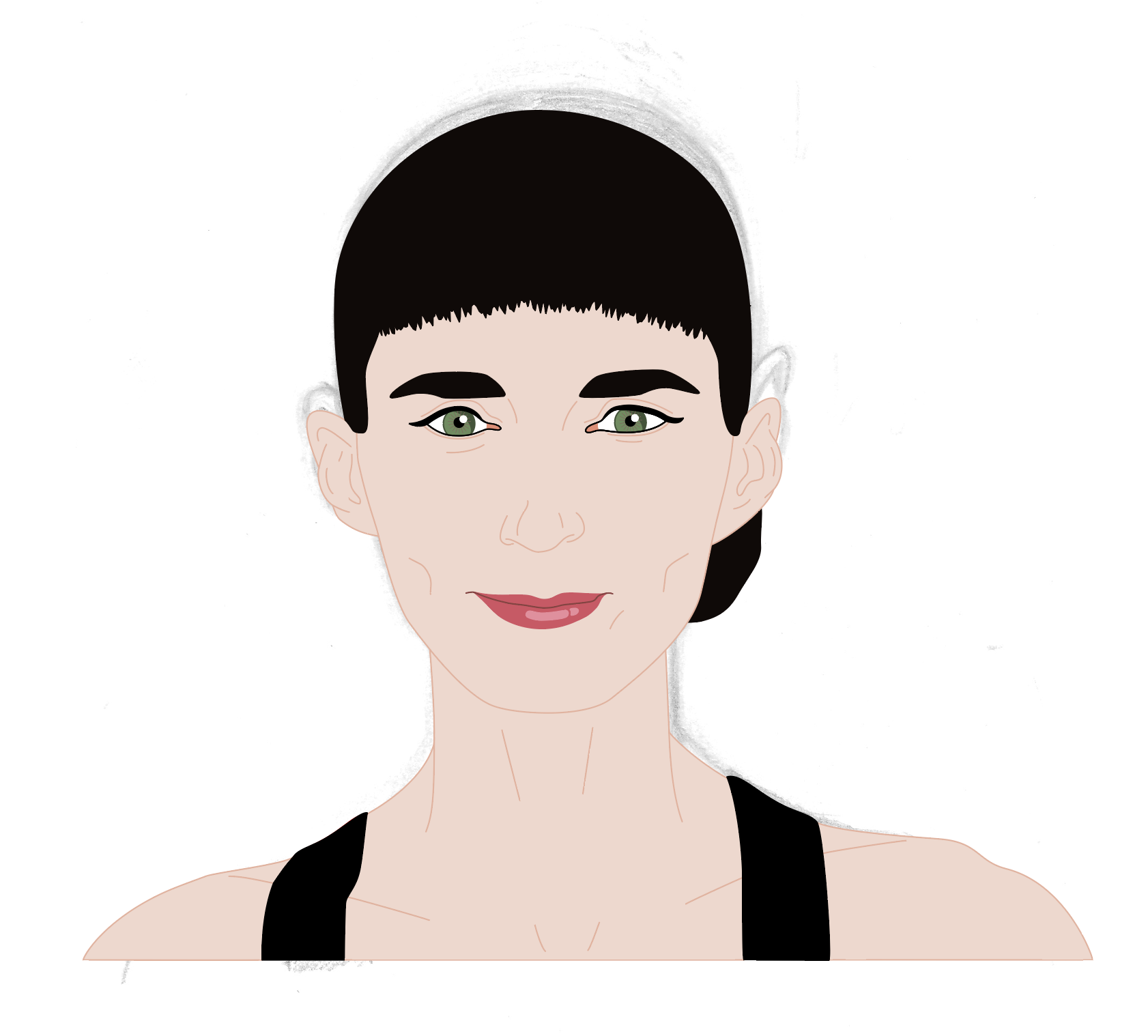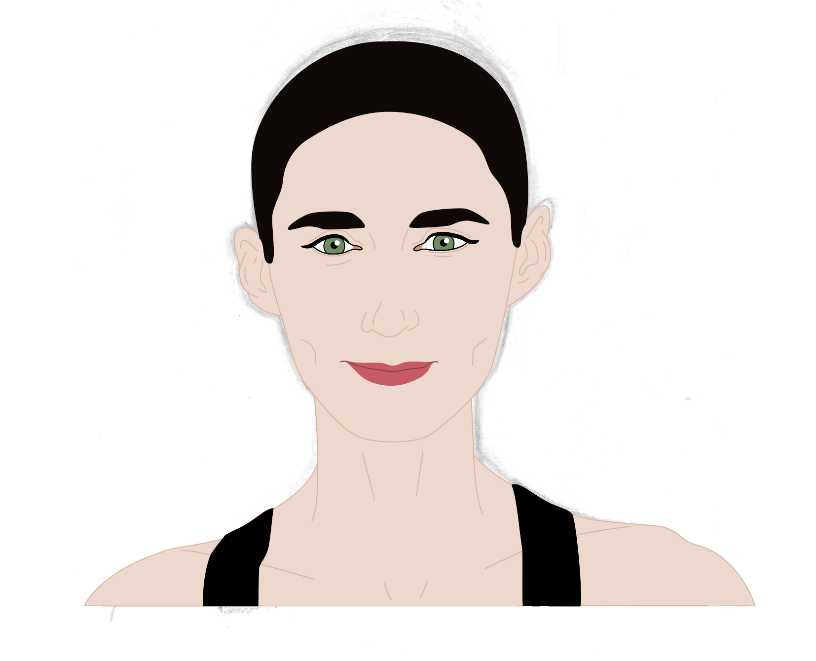 As I was not happy with the drawing in terms of being a character portrait of Rooney Mara, I decided to prolong the pain of this section of the exercise and scan the drawing into Illustrator. I spent an unspeakable amount of time fiddling around trying to get the image to resemble Mara.