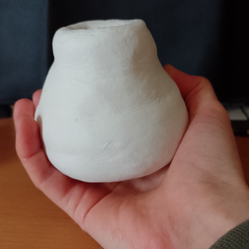 The pot I made did not look quite like that in the tutorial, but for a first attempt, it was reasonable. I also found that I made the sides far too thick so they took a long time to fully dry out (several days). The sides were also not smooth enough. Despite these issues, I really enjoyed making the vase and spent quite some time doing it. On reflection, it was the only part of this exercise that I believe I fully engaged with.