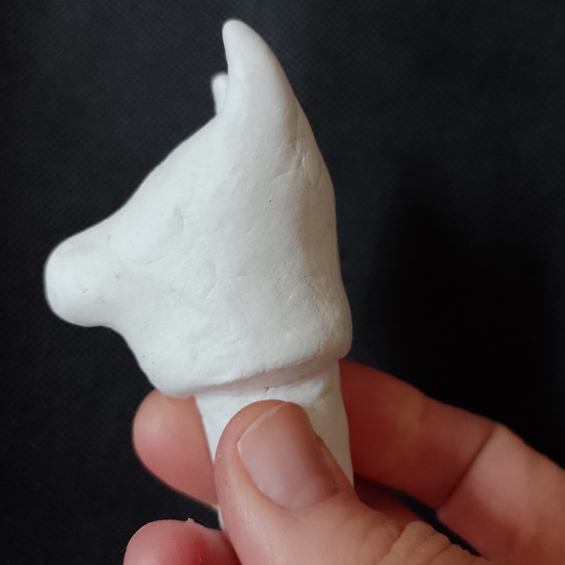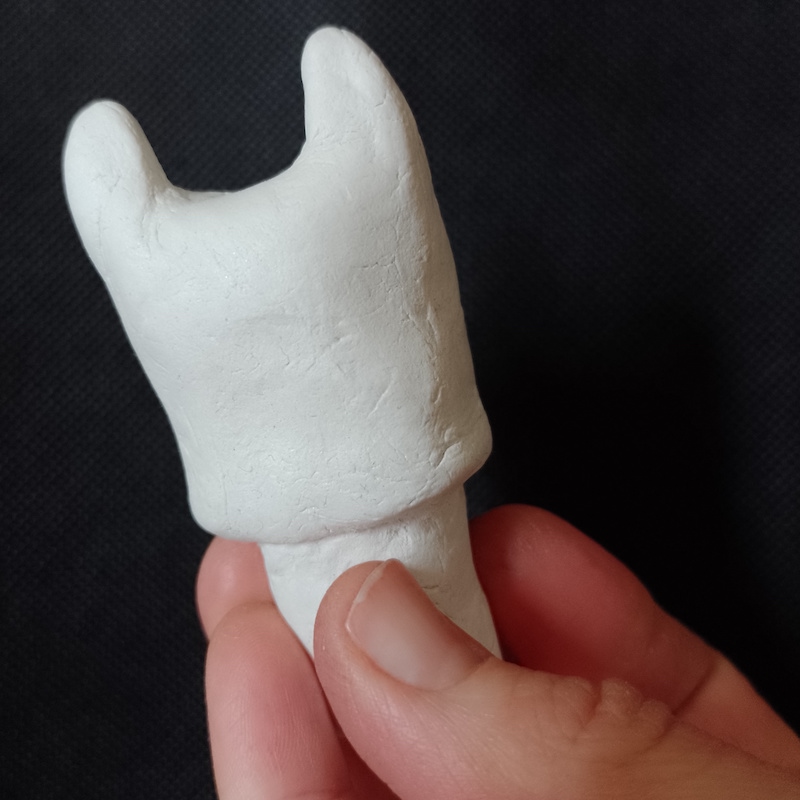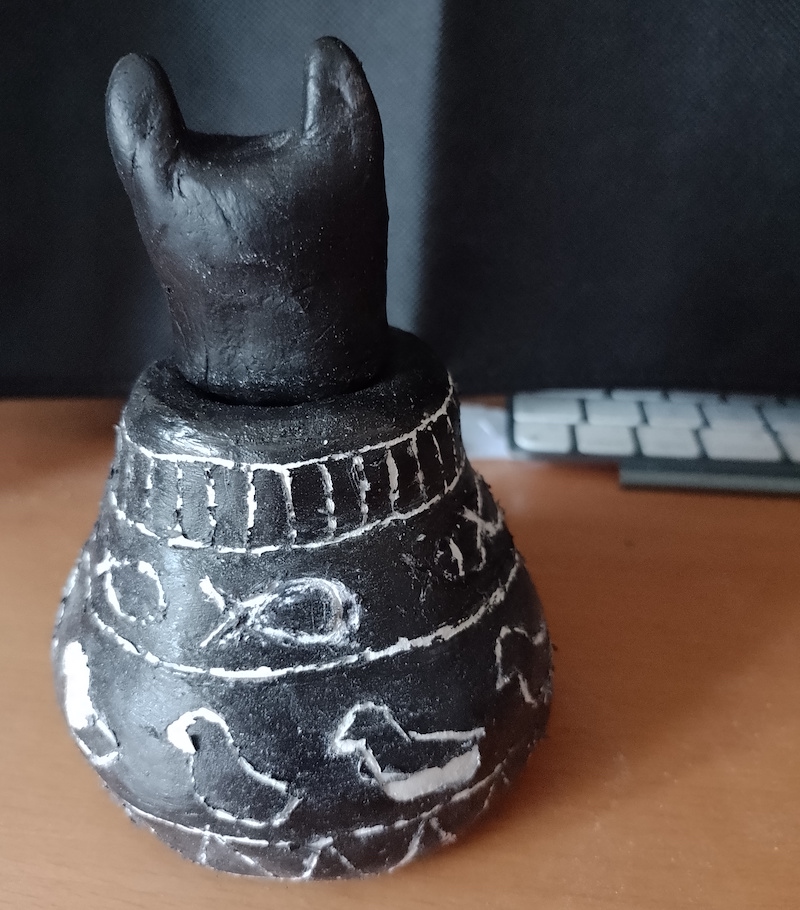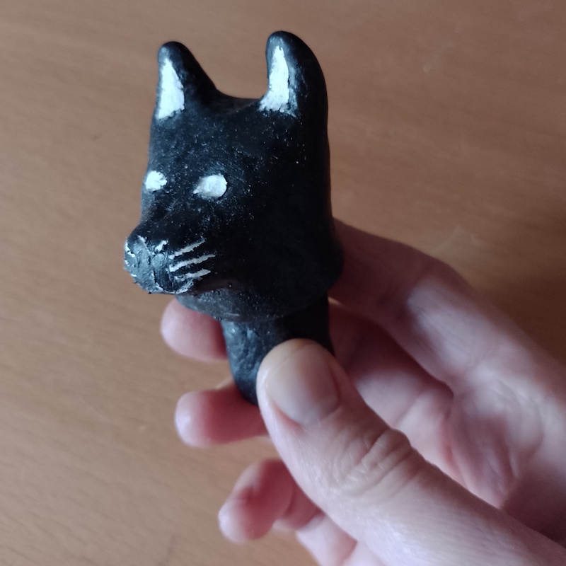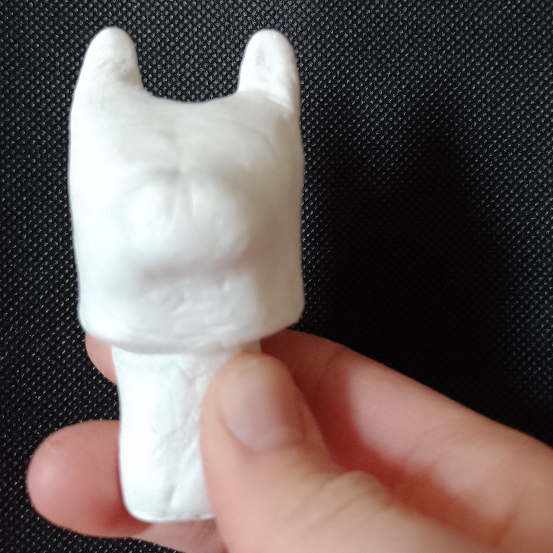 As I now had made the vase, I moved on to creating a cat-shaped head as a lid. This was quite fiddly and I did not get the nose/mouth area quite right (it looks more like a dog), but overall it was not too bad and, most importantly, it fitted in the hole at the top of the vase.
