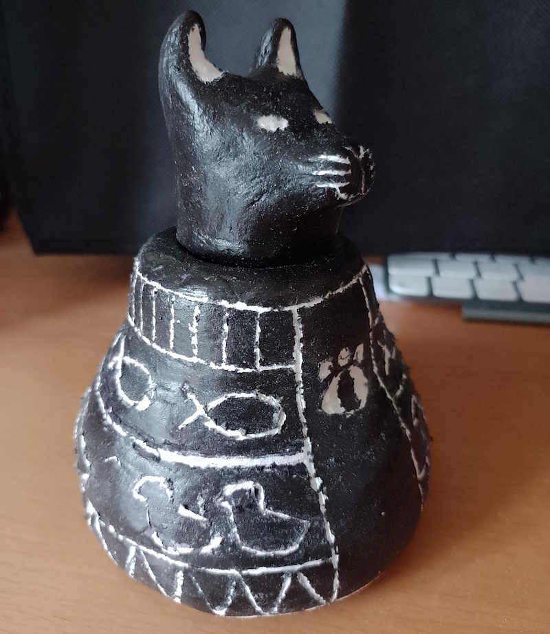 - The shape and size of the vase. It should have resembled the shape of the canopic jar from my research and been much bigger, which would have probably made it easier to add a clearer design to.