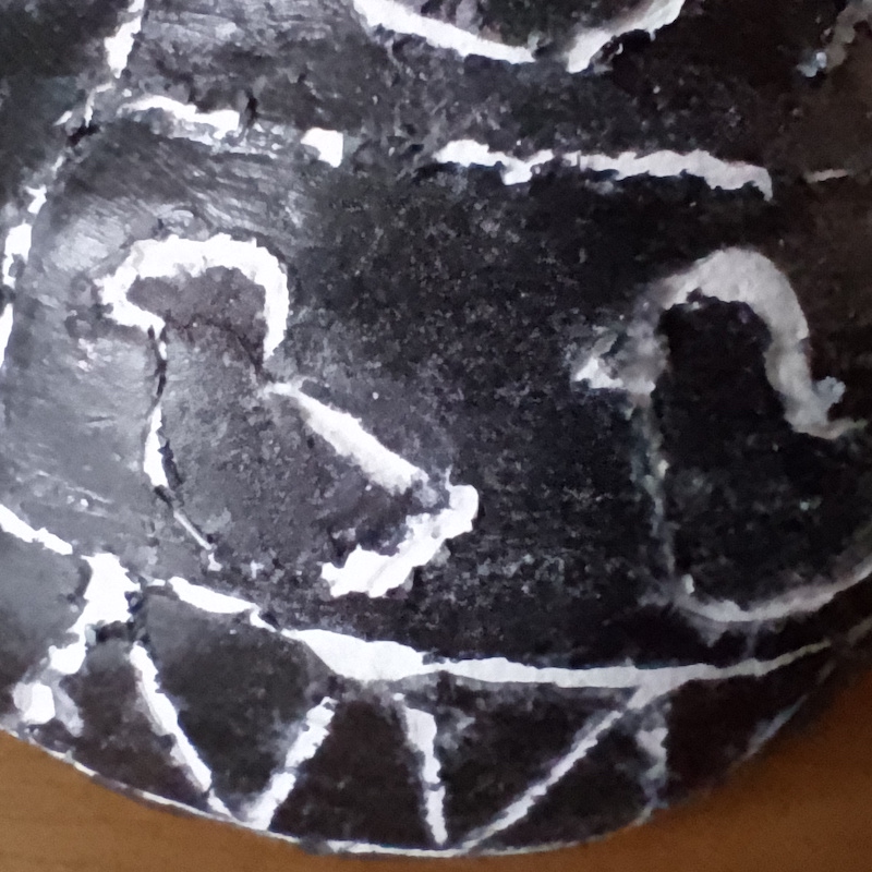 Following what I had learnt during the previous Research Point on this subject, I was most interested in attempting to recreate the sgraffito effect, considering how much I had enjoyed my first attempts using scratchboard in an earlier exercise. I was keen to keep the colours to a minimum and I wanted to try producing a modern version of a piece of pottery that could be linked back to one of the ancient civilisations.