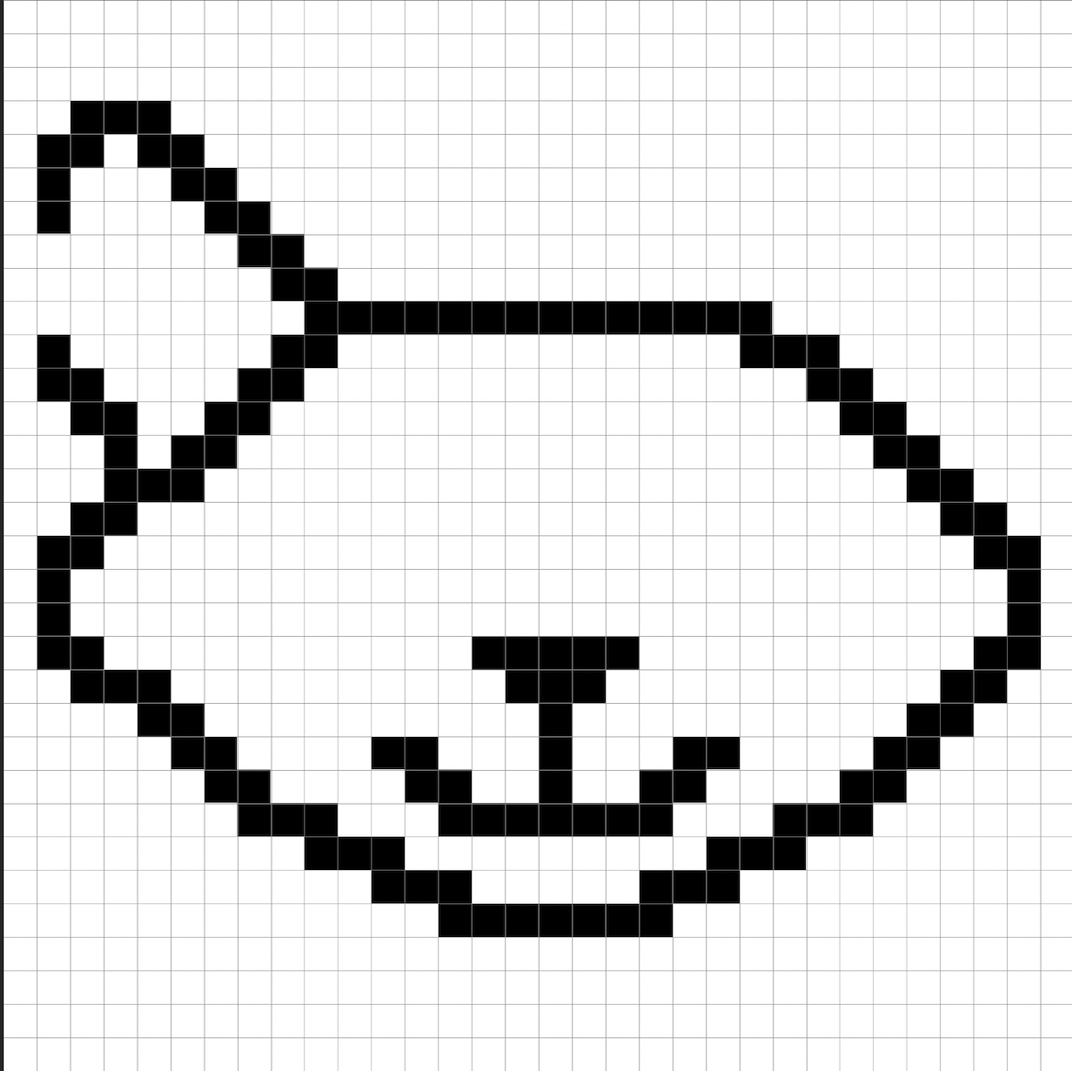 For this exercise, I decided to work directly in Photoshop and not produce any rough drafts by hand first. As with the test pixel image of the cat, I opted for a 32×32 pixel grid.