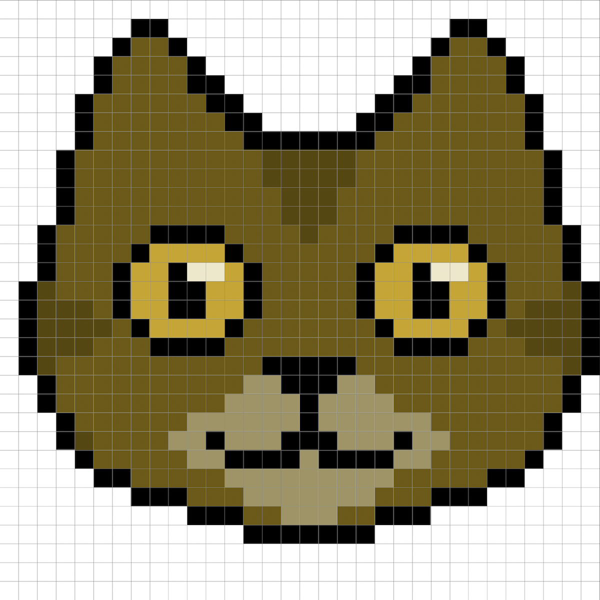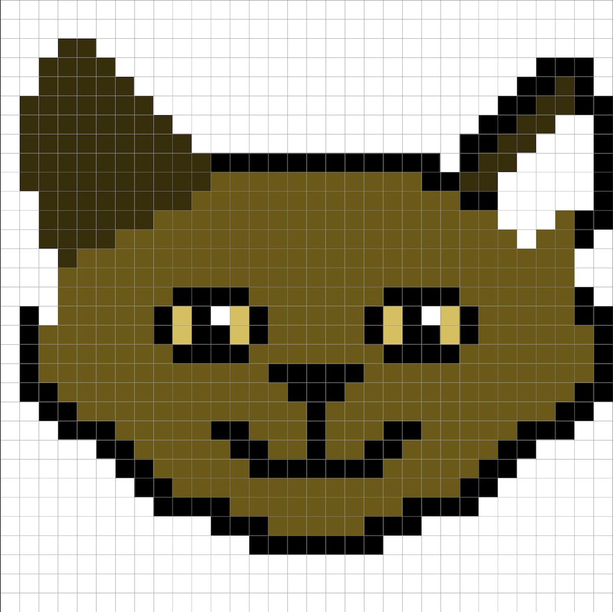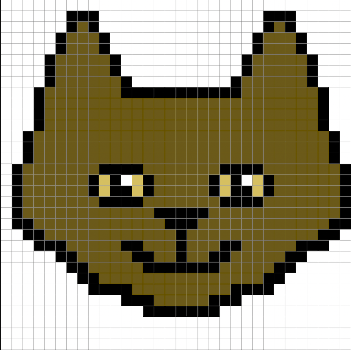 Finally, I did produce the version below, with acceptable ears. I was not happy with this representation of a cat, however, and wanted to make further improvements. I also did not like that it was not central within the grid, but this was due to not taking into consideration the number of pixels at the start.