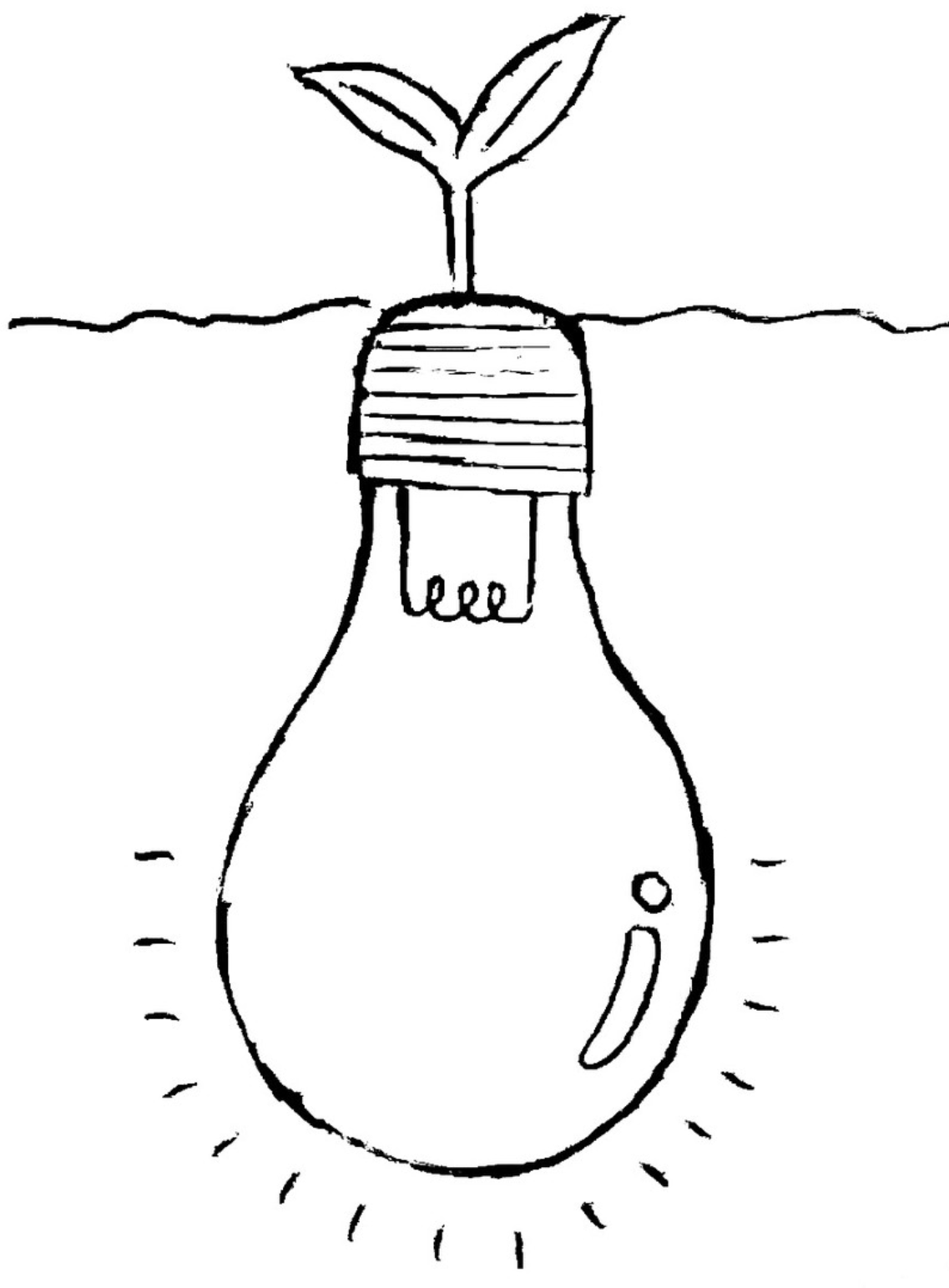 The planting of a seed that would grow into lightbulb. This could then be placed in an empty thought bubble, thus giving the bubble’s ‘owner’ a bright idea.