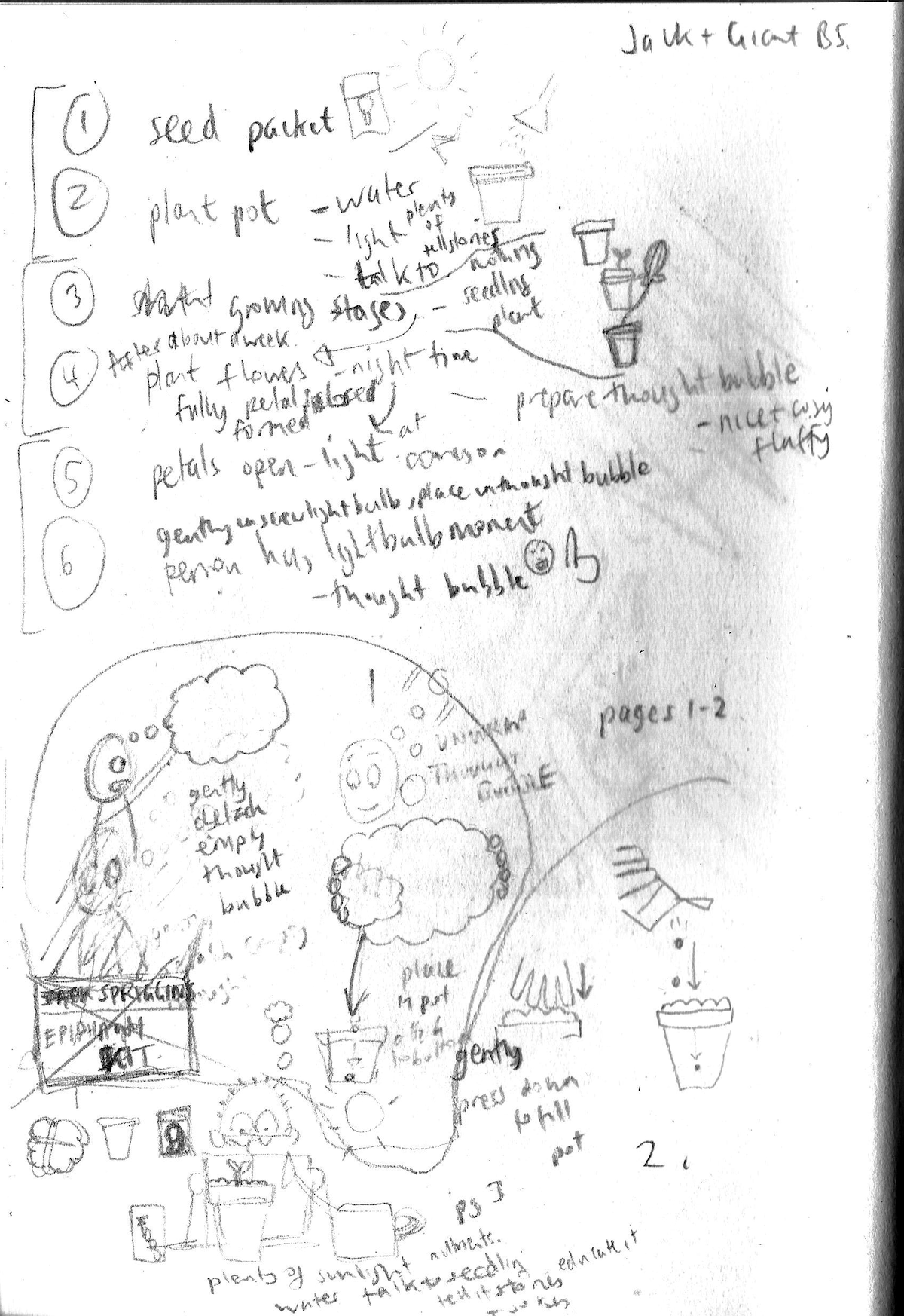 I then roughly sketched the appropriate illustrations on each page, but I could not find a way of making them flow logically.