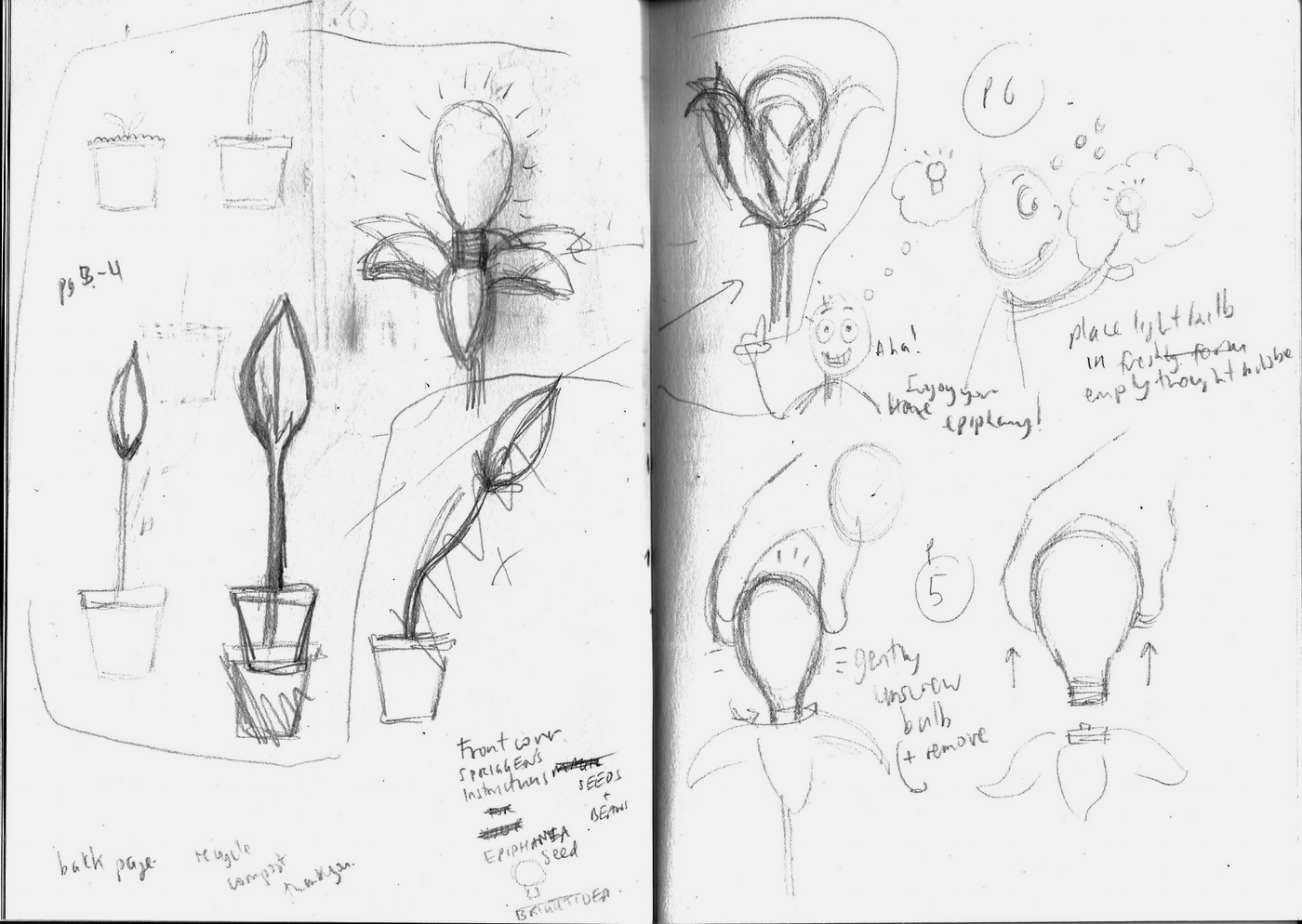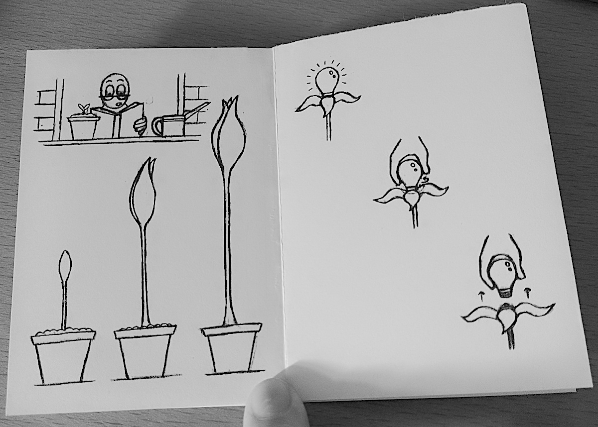 The other influencing piece of work was a simple sketch I did for the #randomfriday weekly challenge set by @illoca22 on Instagram, which was based on the word ‘bulb’. My illustration was of a lightbulb in the soil with a green shoot protruding out of the surface.