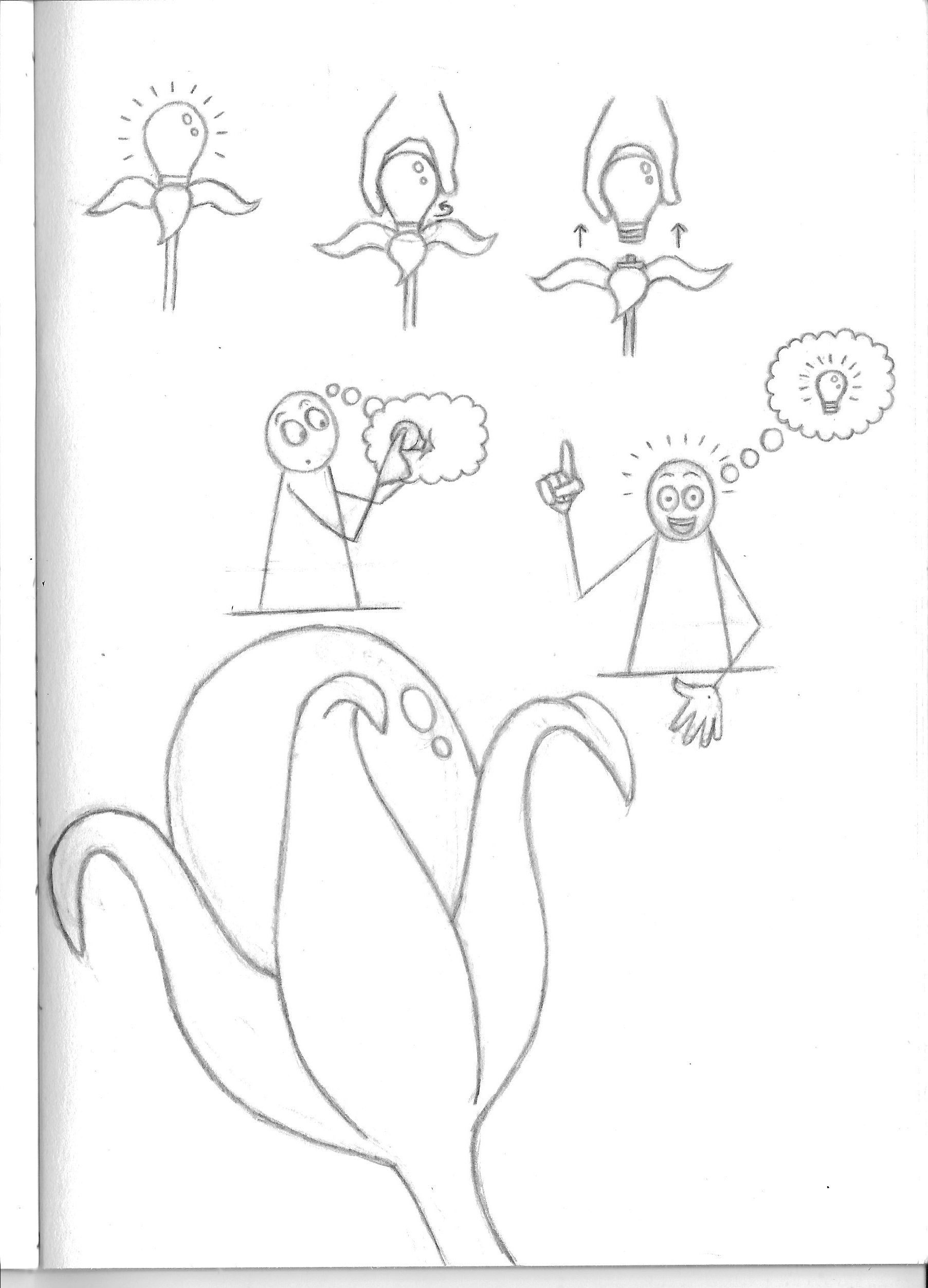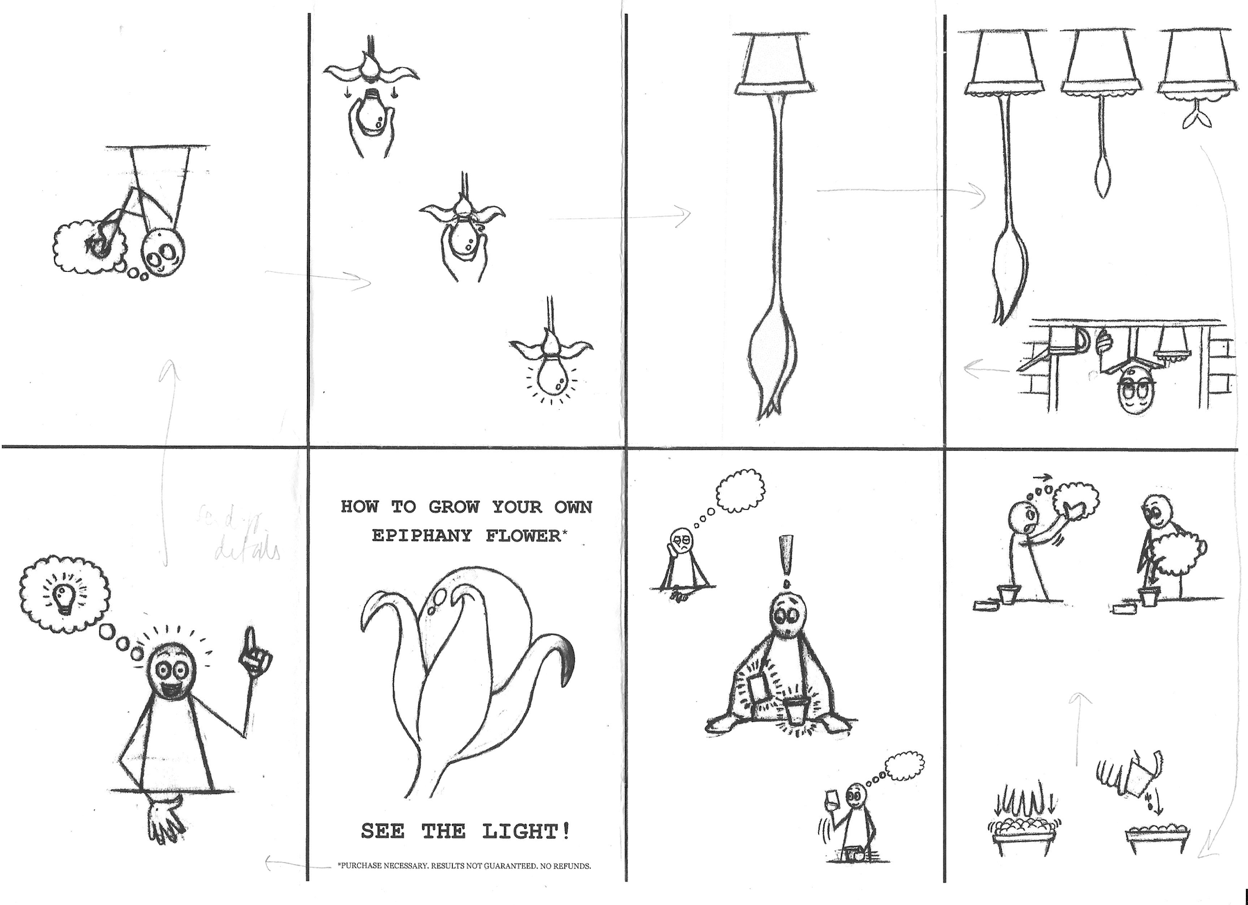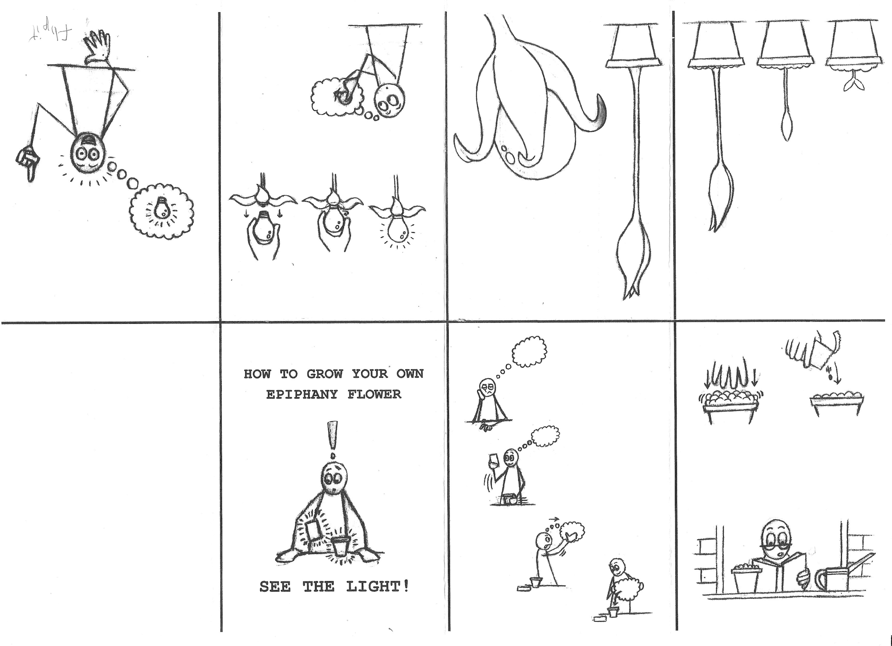 The planting of a seed that would grow into lightbulb. This could then be placed in an empty thought bubble, thus giving the bubble’s ‘owner’ a bright idea.