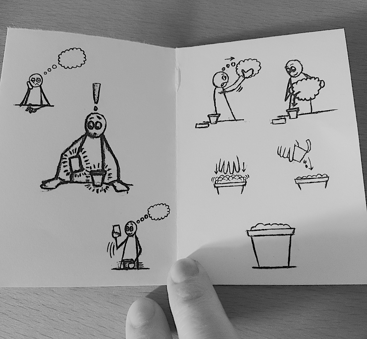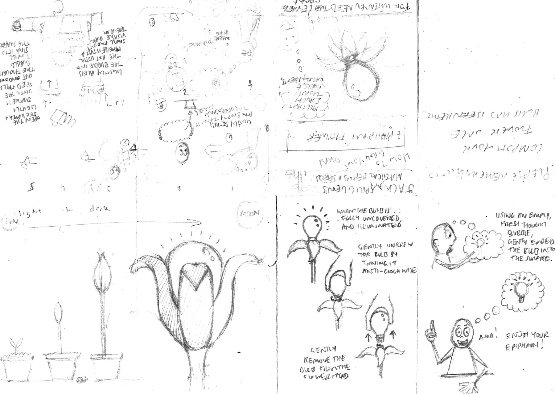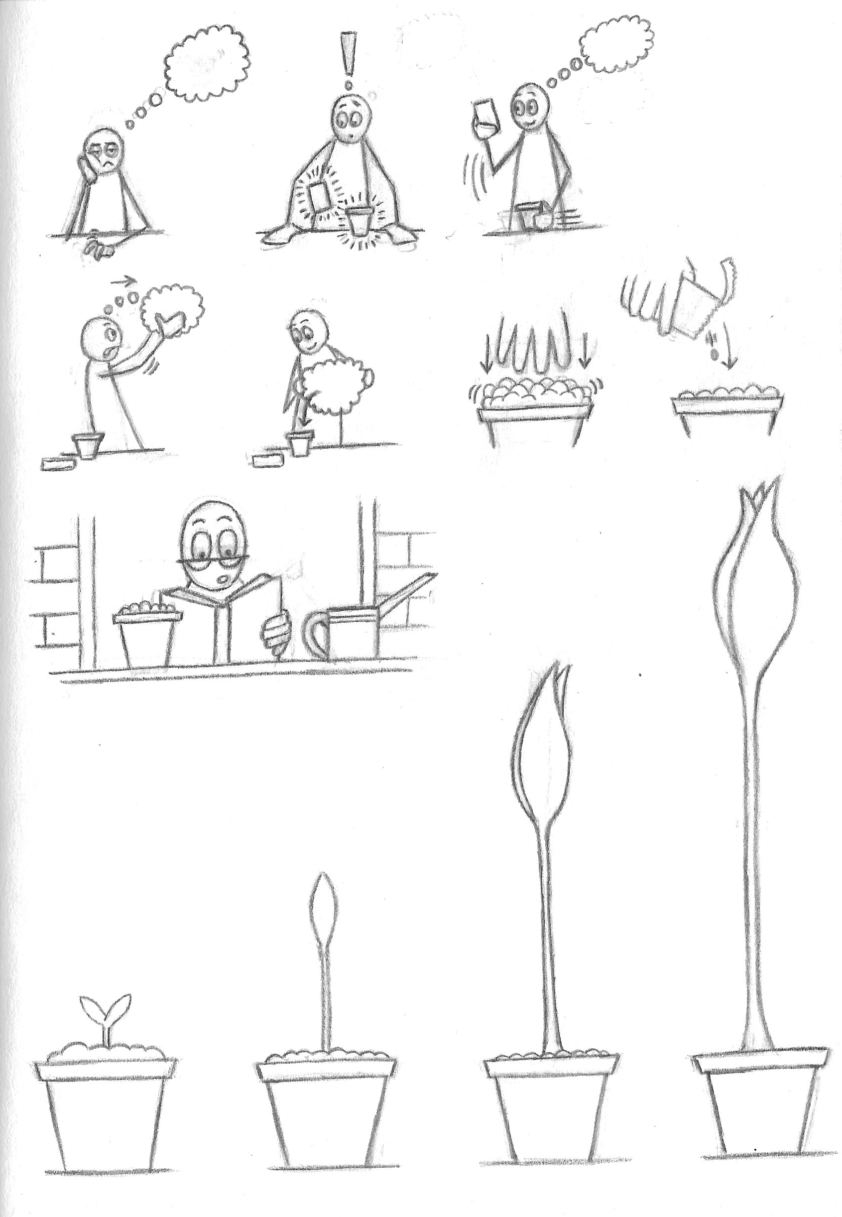 The planting of a seed that would grow into lightbulb. This could then be placed in an empty thought bubble, thus giving the bubble’s ‘owner’ a bright idea.