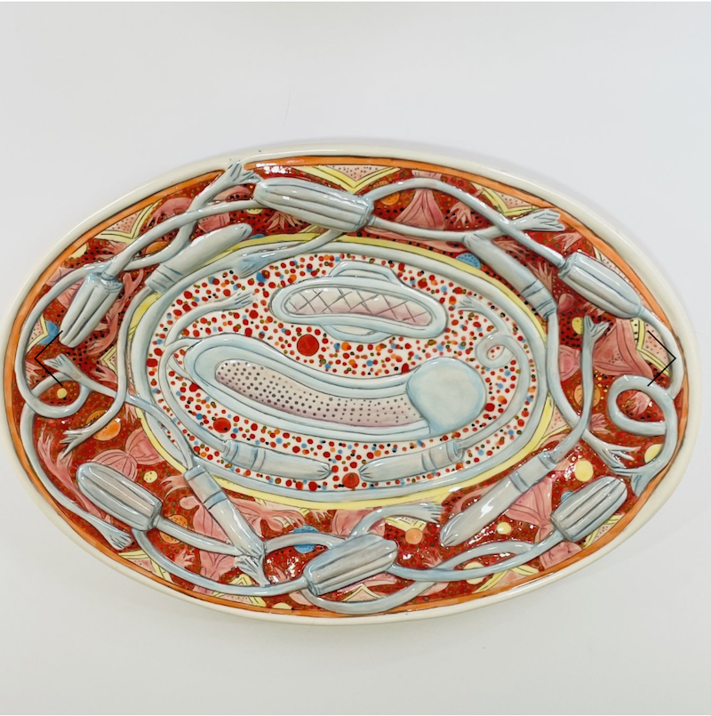 It seemed to be quite a challenge to find ceramicists that focus on illustrative work (or vice versa), but I did manage to discover another interesting example in the form of Mariko Paterson. I was slightly reminded of Grayson Perry’s work in terms of style and content, but less explicit. Like Perry, some of Paterson’s work is political or ‘confrontational’ in nature, but she also has some just plain quirky pieces on offer.