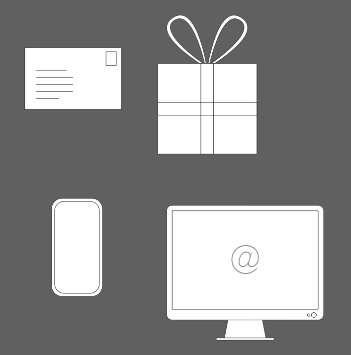 I began this exercise by using Illustrator to design the four symbols I would be using to represent: card, present, text and email. I wanted to keep this very simplistic yet easily recognisable.