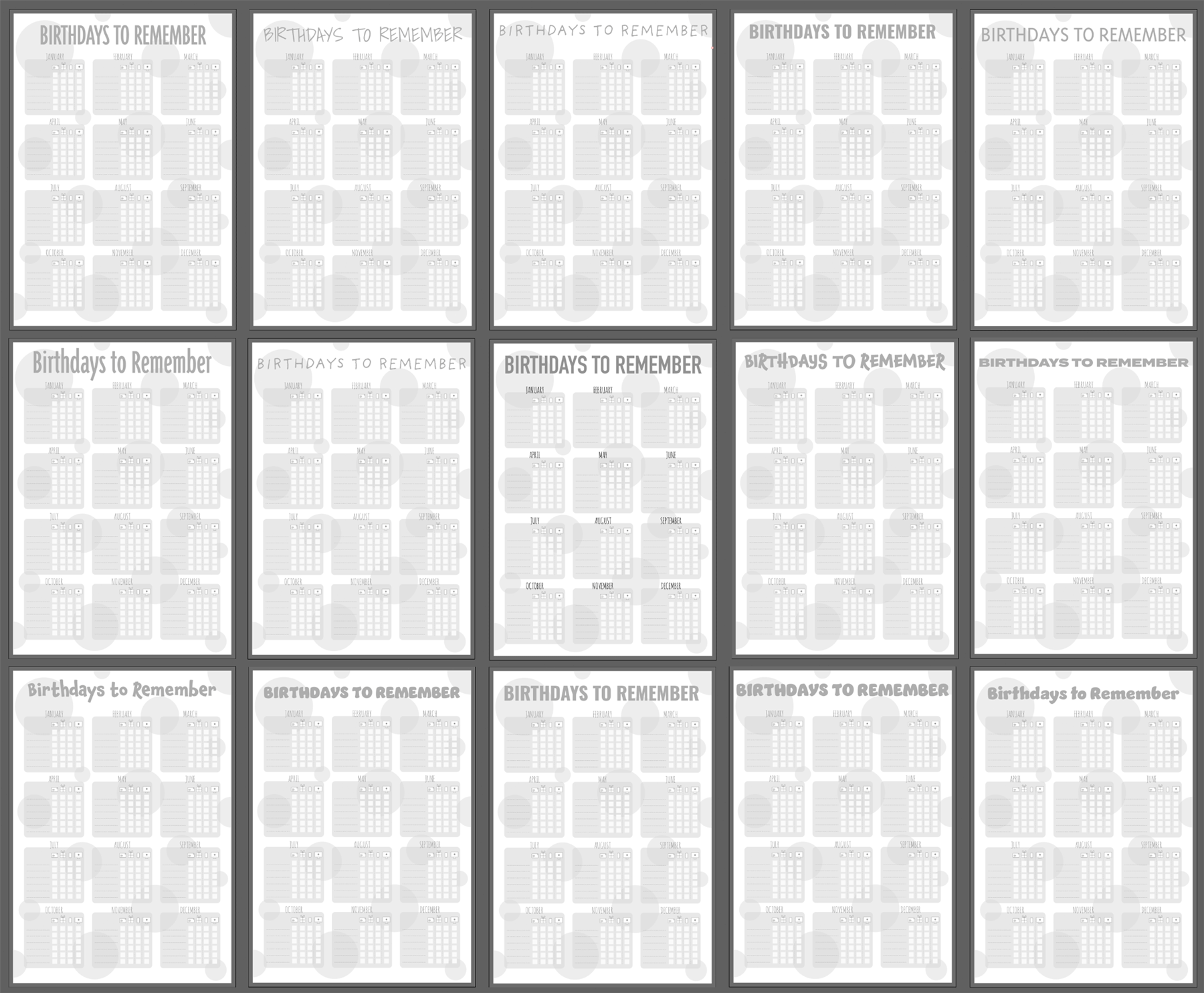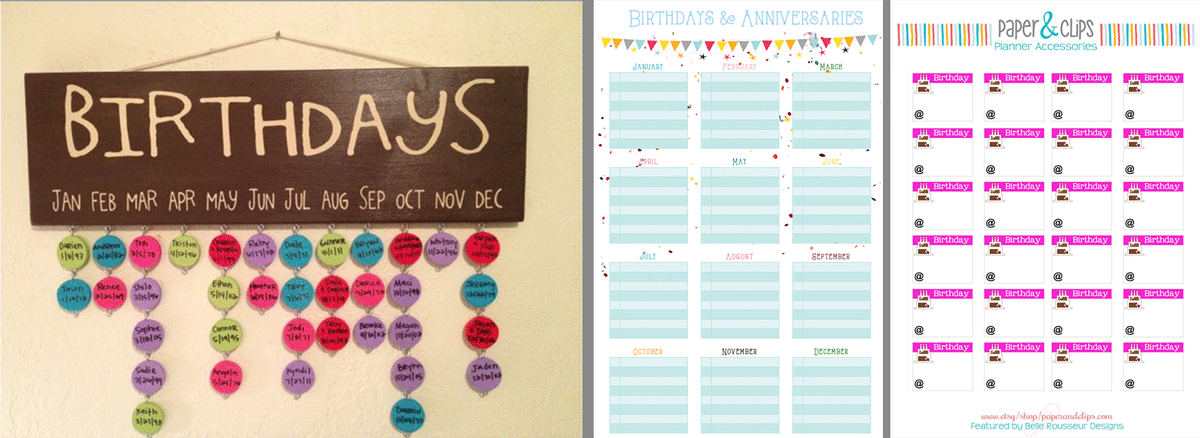 Examples of Birthday Calendars (sourced via Google Image Search)