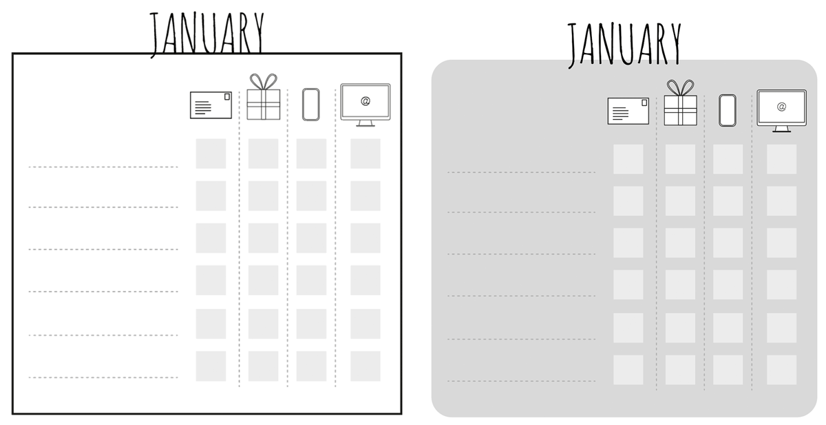 Next, I created an A3 size artboard onto which I placed twelve boxes, one to represent each month of the year.