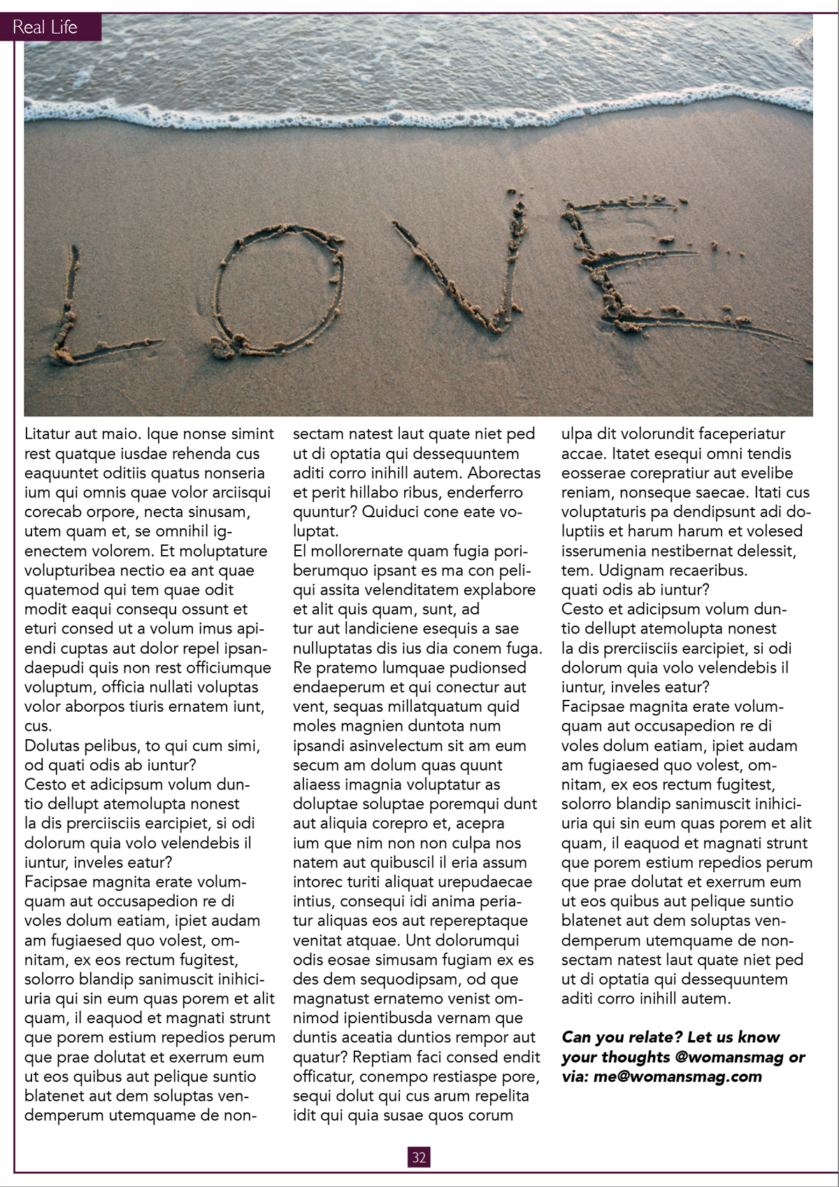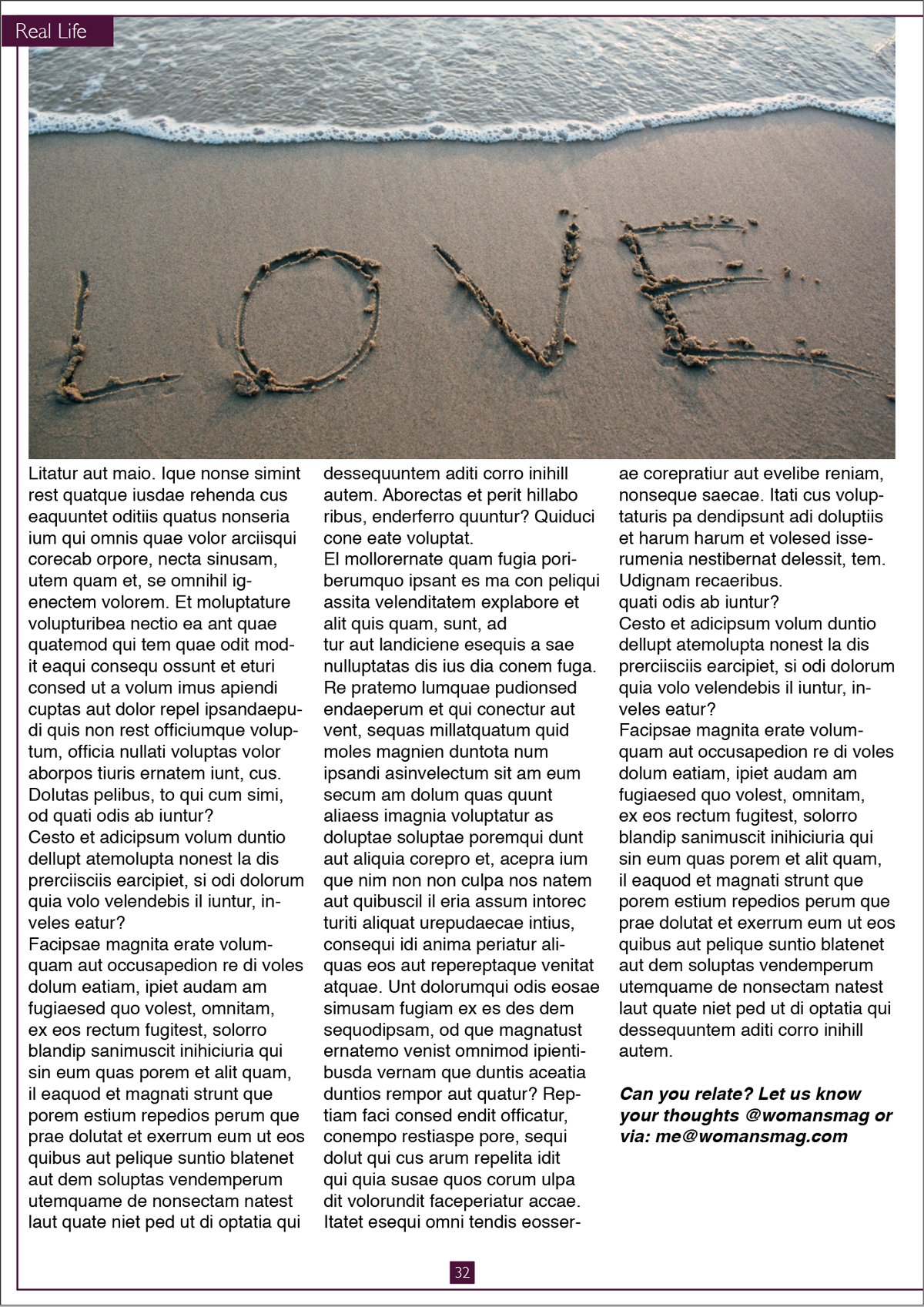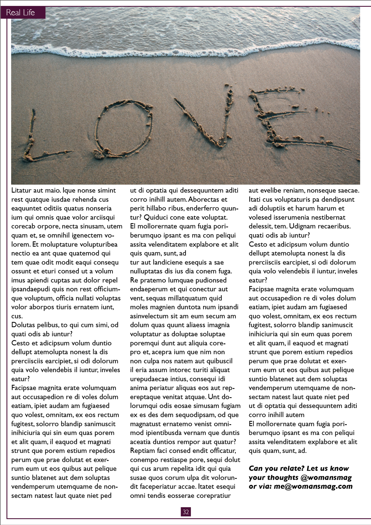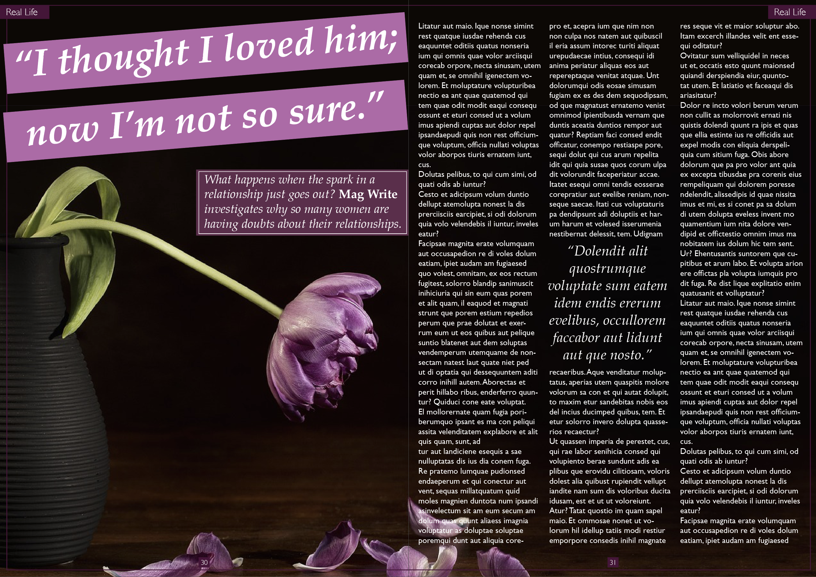 I began by sourcing some examples of layouts and text for magazines aimed at women.
