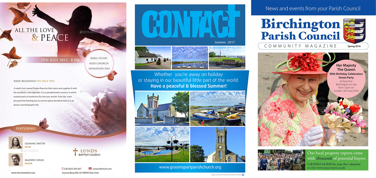 Examples of parish magazines (sourced from Google Images)