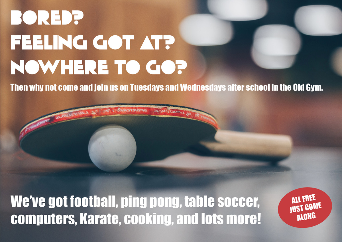 – A poster to advertise an after school club for boys aged 13-14 (A3 size)