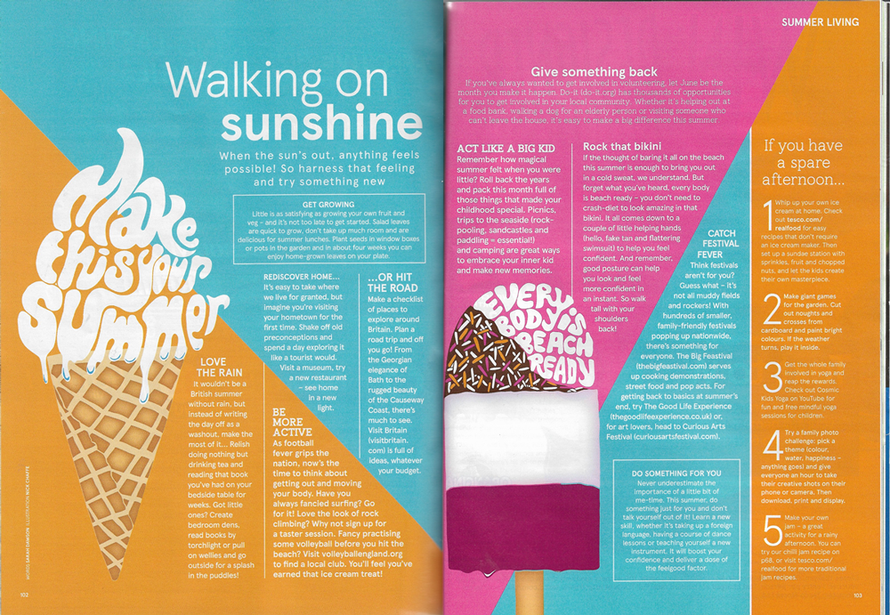 I found the layout of this double page spread very easy to read. There is a clear hierarchy and the use of white space effectively means a lot of text and information can be included without affecting readability. The choice of font and leading makes it easy to read, even at a smaller point size. The colour scheme runs across both pages.